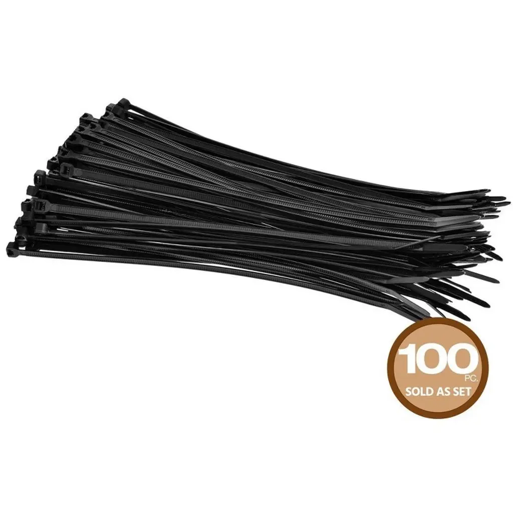 Monoprice 8-inch Mountable Head Cable Tie, 100pcs/pack, 40 Lbs Max Weight - Black