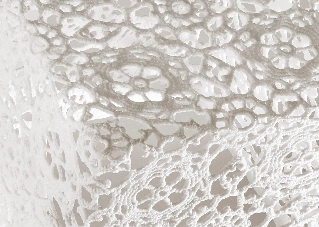 Who would have ever thought of a laced crochet in the shape of a table? Defying all fabric capabilities, the laced Crochet table is the ultimate accessory for any interior.Additional information:Material: Cotton, epoxy resinFinish: WhiteDimensions: 30 W x 30 D x 30 H cmAvailable in other size option: Large.