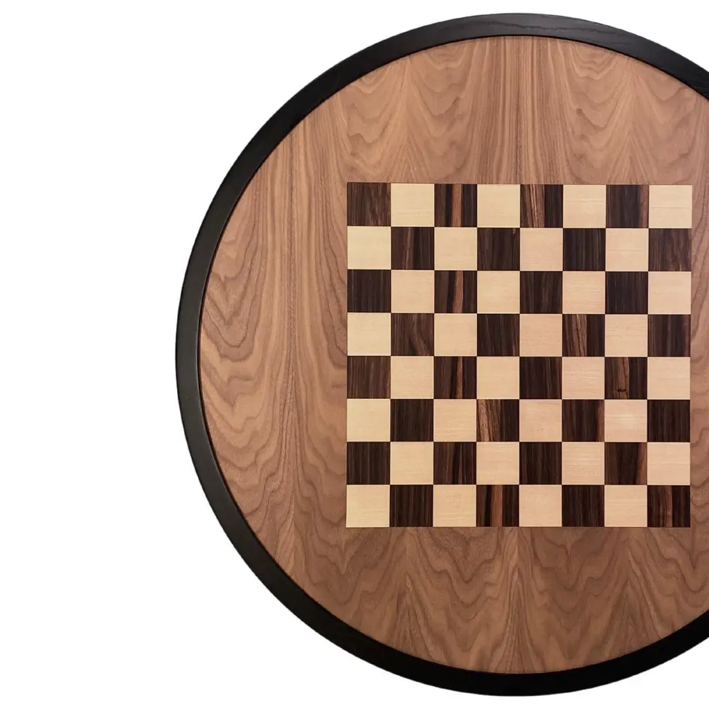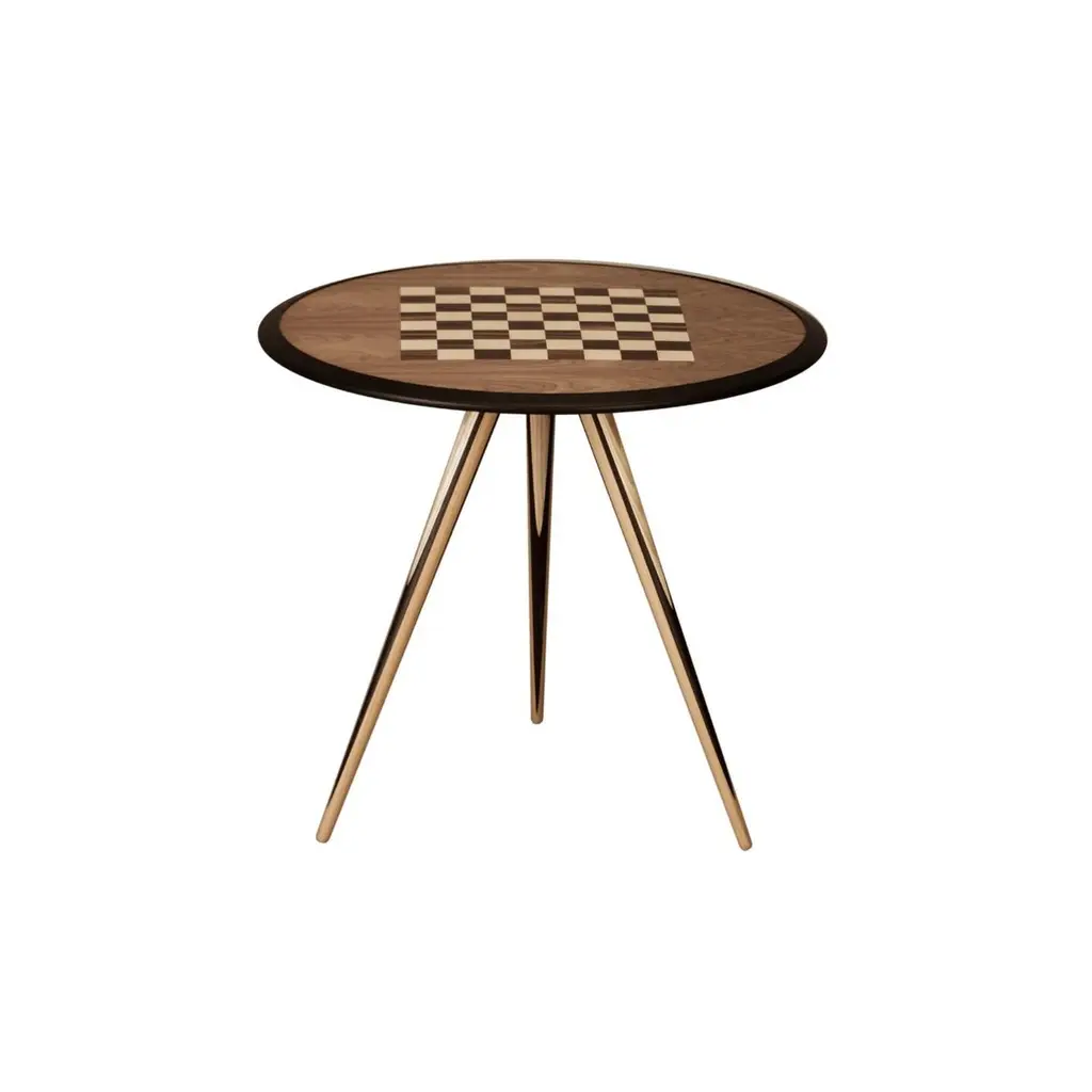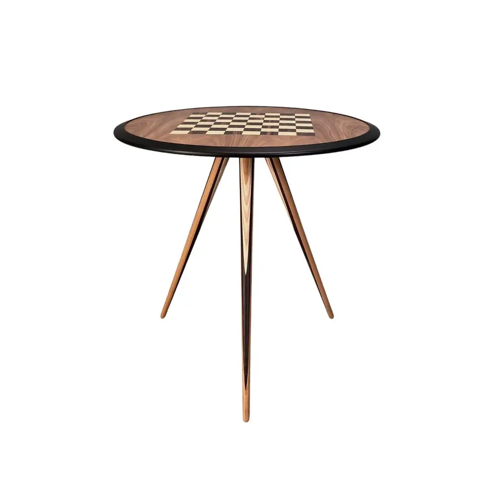 Chessboard; fine inlay of maple and ebonyTop in canaletto walnutLegs are hand turned, made of wengè, cherry, ash woodCarambola is a collection designed by Maurizio Duranti for Morelato. Carambola is a furniture collection skillfully obtained from the combination of different wood essences. Wengè, cherry and maple come together to give life to precious furniture line with a decisive character.Game table made of ashwood with veneered chessboard on the top, and turned legs.Measures:L 80 W 80 H 75Weight: 10 kgCBM: 0,15 - PACKAGES: 1.
