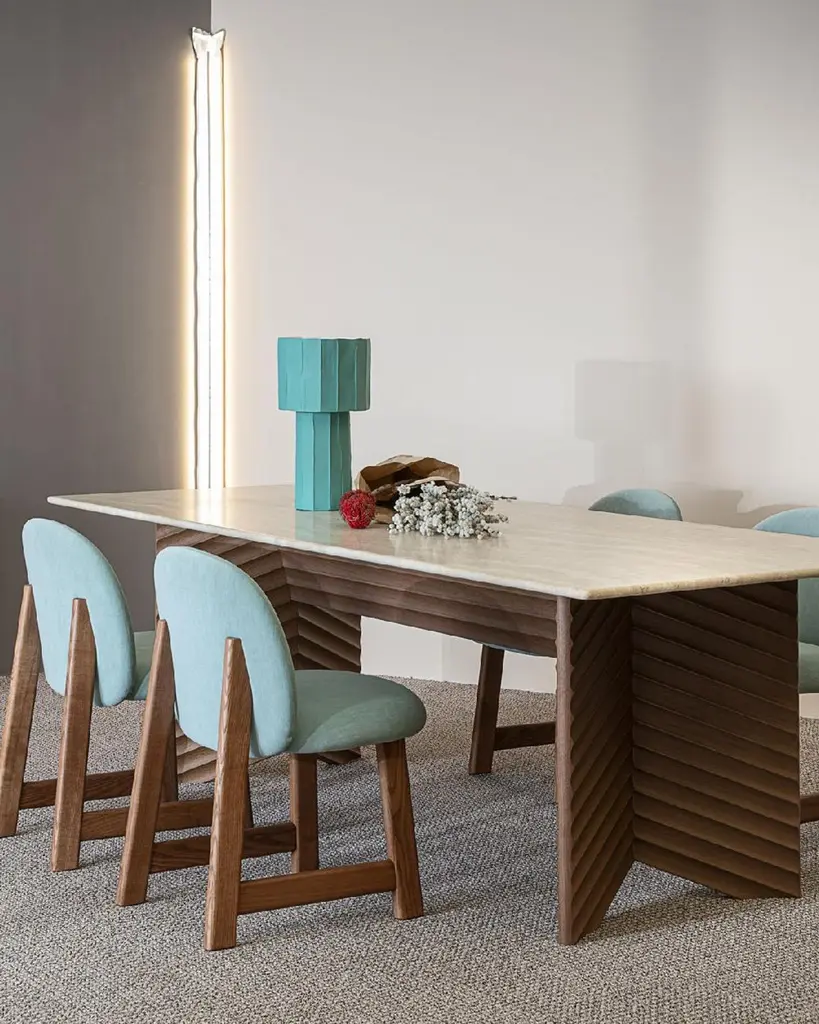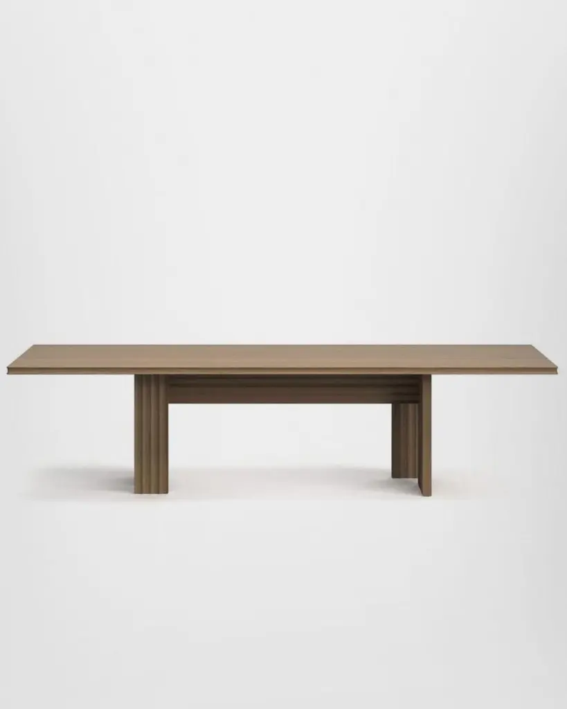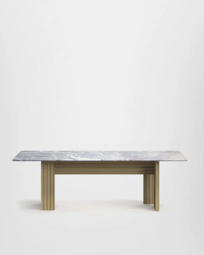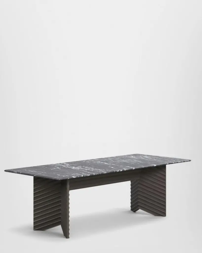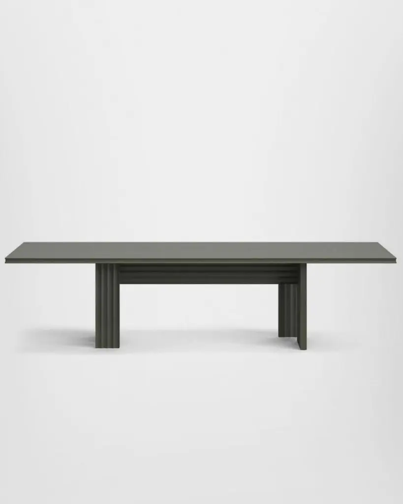 With linear forms and clear-cut symmetries, the Rows collection by Patricia Urquiola is geometrical and minimalist, expressing a refined artistic concept. Doors, side panels and table bases are both formal and decorative. The curved milled edge running the length of the surface is inspired by the nature morte of Amédée Ozenfant, a French writer and painter who founded the Purism movement.Urquiola also conveys the expressivity of form in the two rectangular tables. Both pieces show a strong contrast between the solidity of structure, the graphic effect of the surfaces and the linearity of the table top, available in wood, back-painted glass or marble.The Vertical table, designed with a nod to classical architecture, brings to mind the fluting of a column. The sculpture influence is even more evident in Diagonal, a table whose perpendicular geometry and oblique lines add more movement to the structure.Round version available.Different tops and finishes options available, please inquire with us.DIMENSIONS:Small: W. 180 x D. 95 x H. 74 cmMedium: W. 240 x D. 100 x H. 74 cmLarge: W. 300 x D. 100 x H. 74 cmAvailable in different options, price upon request.