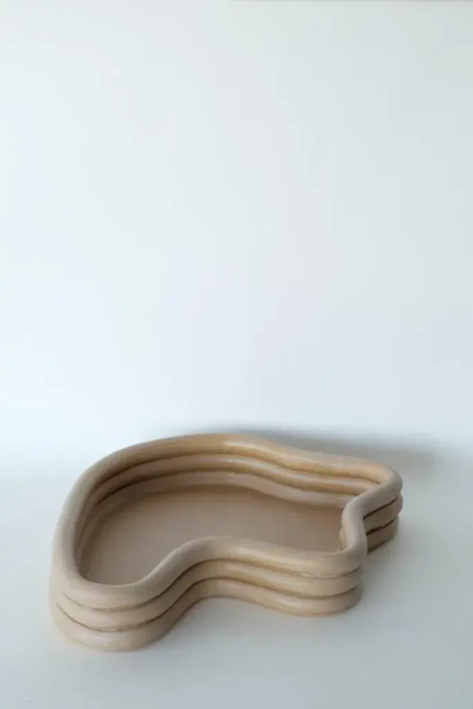 Mother table centerpiece by Sophie Parachey Dimensions: W 37 x D 32 x H 8 cm Materials: Sand stoneware, mate sage glaze.