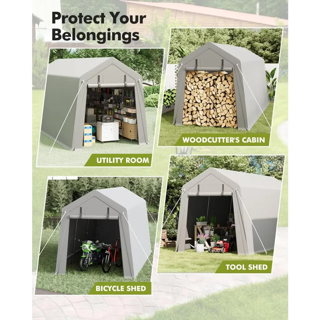 Motorcycle Storage Shed, Heavy Duty Portable Tent with Rolled Zipper Door, Waterproof Design for ATV, Motorcycle, Bike, Firewood, and Garden Tools