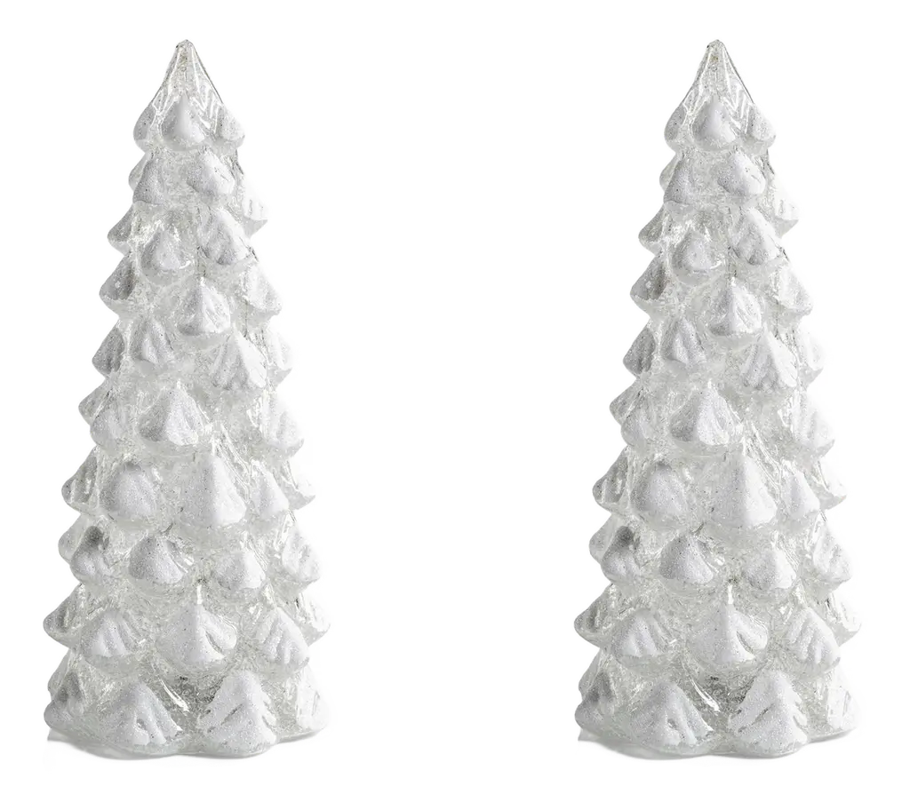 Add a touch of festive charm to your decor with the Mugo Pine Rotating LED Holiday Tabletop Tree. Resembling speckle glass, this delightful figurine rotates to showcase its elegant design. Featuring LED holiday lighting, it beautifully illuminates any space. The pine pencil Christmas tree sits atop a sturdy round base, making it a perfect centerpiece for your holiday celebrations. Battery operated LED tabletop tree. Rotating decorative glass tree. The round base ensures stability. Requires (3) AA batteries, not included A perfect accent to your holiday home decorations.