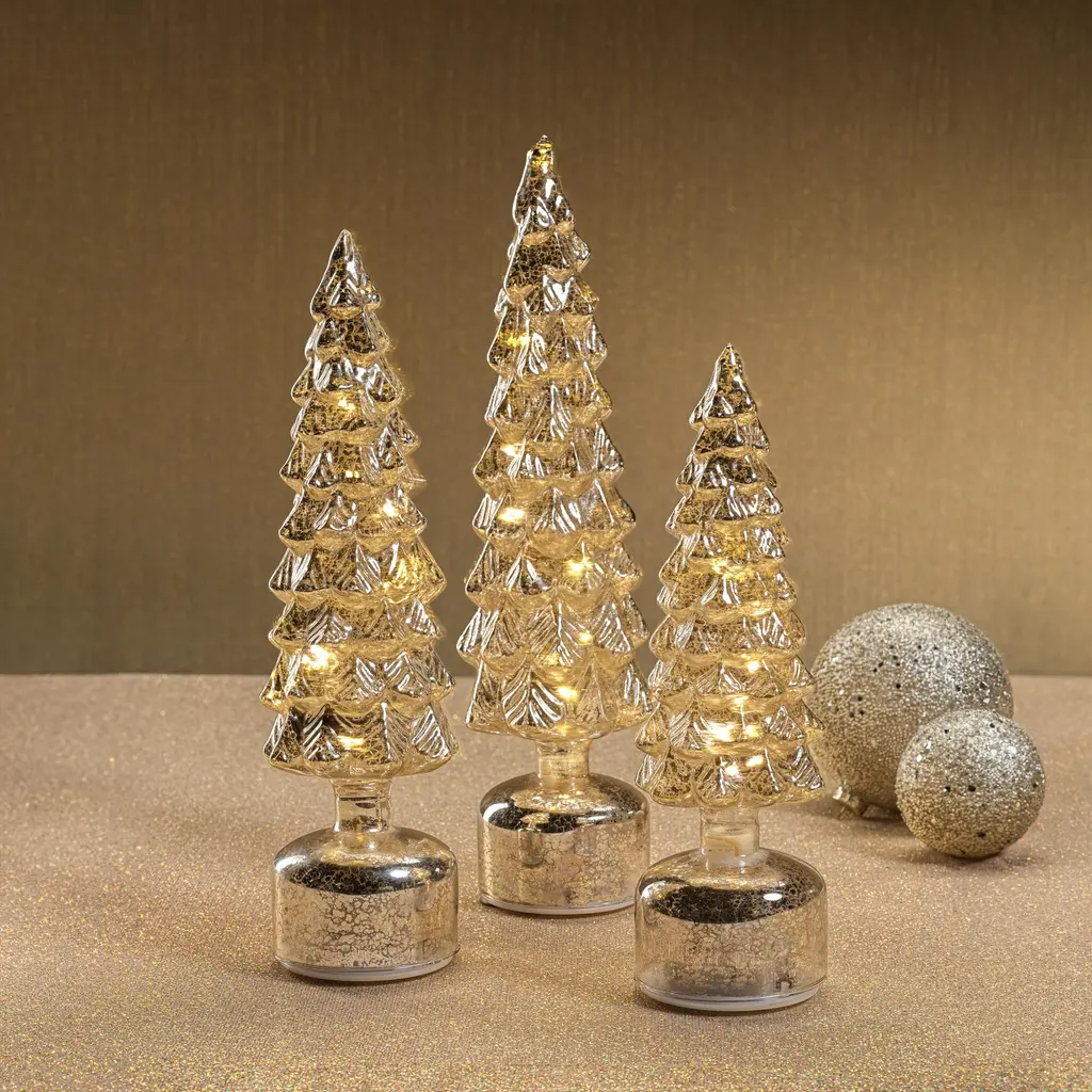 Add a touch of festive charm to your decor with the Mugo Pine Rotating LED Holiday Tabletop Tree. Resembling speckle glass, this delightful figurine rotates to showcase its elegant design. Featuring LED holiday lighting, it beautifully illuminates any space. The pine pencil Christmas tree sits atop a sturdy round base, making it a perfect centerpiece for your holiday celebrations. Battery operated LED tabletop tree. Rotating decorative glass tree. The round base ensures stability. Requires (3) AA batteries, not included A perfect accent to your holiday home decorations.