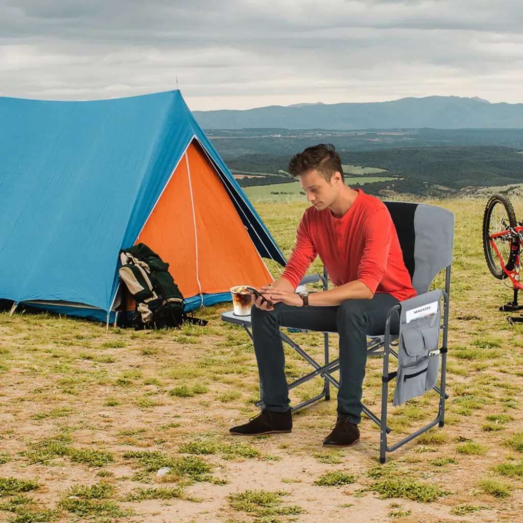 Upgrade your seating with this heavy-duty aluminum director’s chair designed for both comfort and convenience. With its foldable design, built-in side table, and supportive armrests, it’s perfect for camping, events, patios, or even home offices. Sleek, sturdy, and versatile, it brings practical function with a modern look to any space.