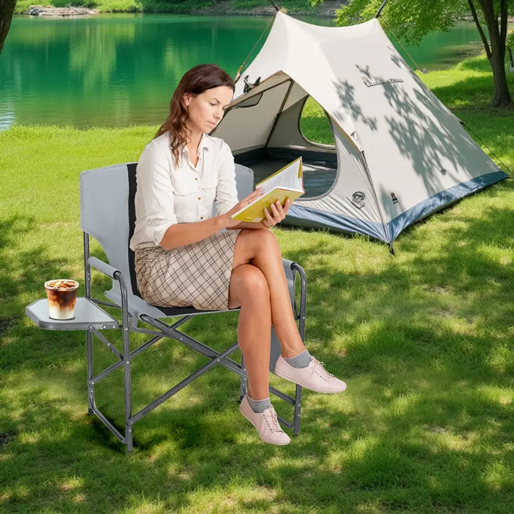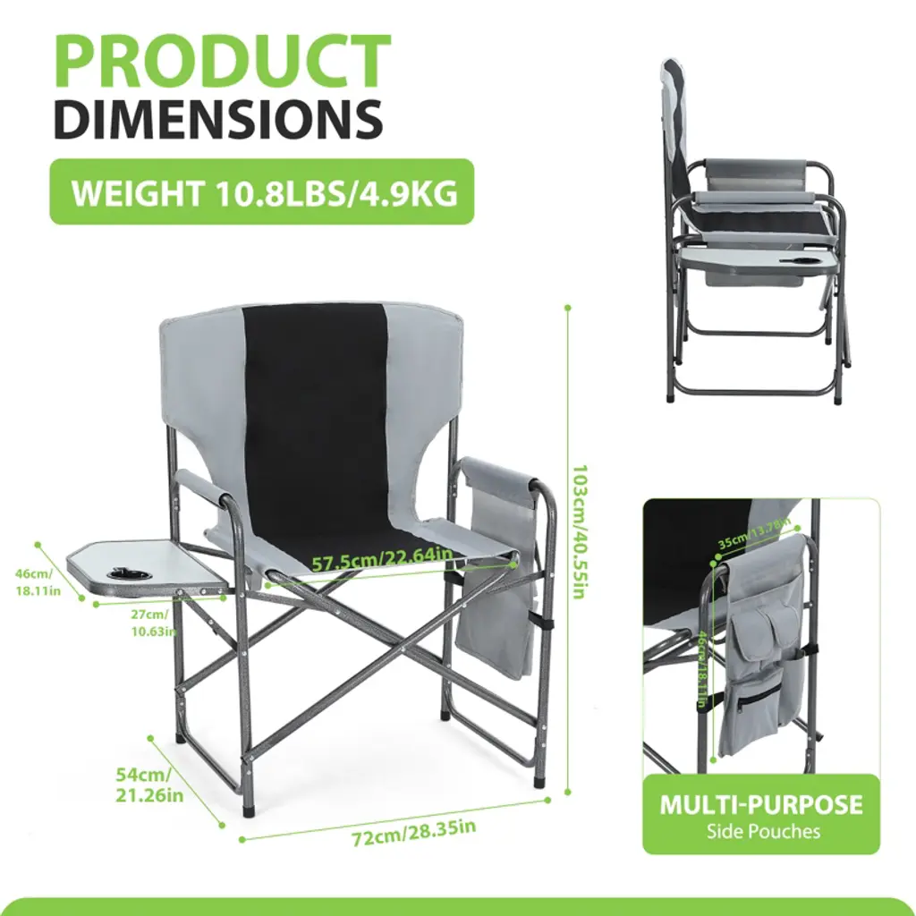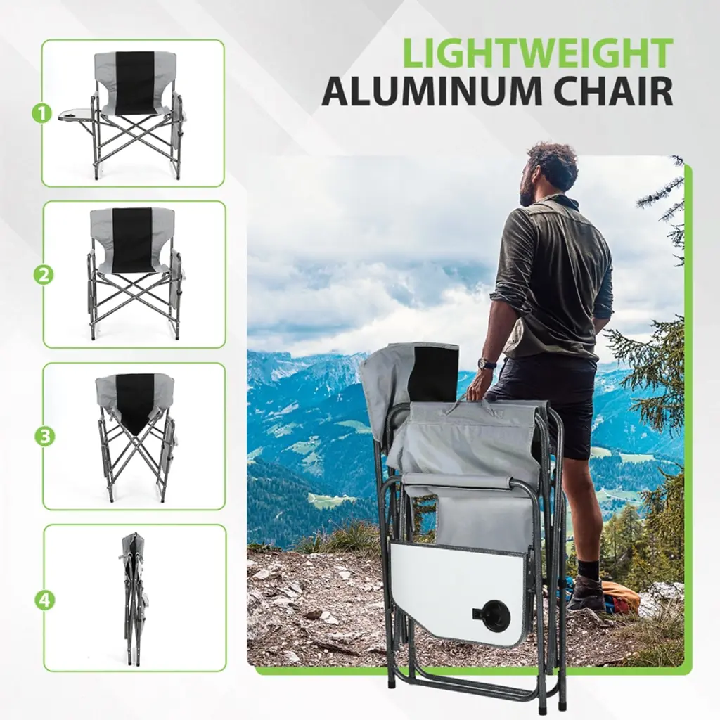 Muke Foldable Aluminum Director’s Chair With Side Table & Pocket, Lightweight Heavy-duty Armrest Seat For Camping, Patio, Events & Indoor Use
