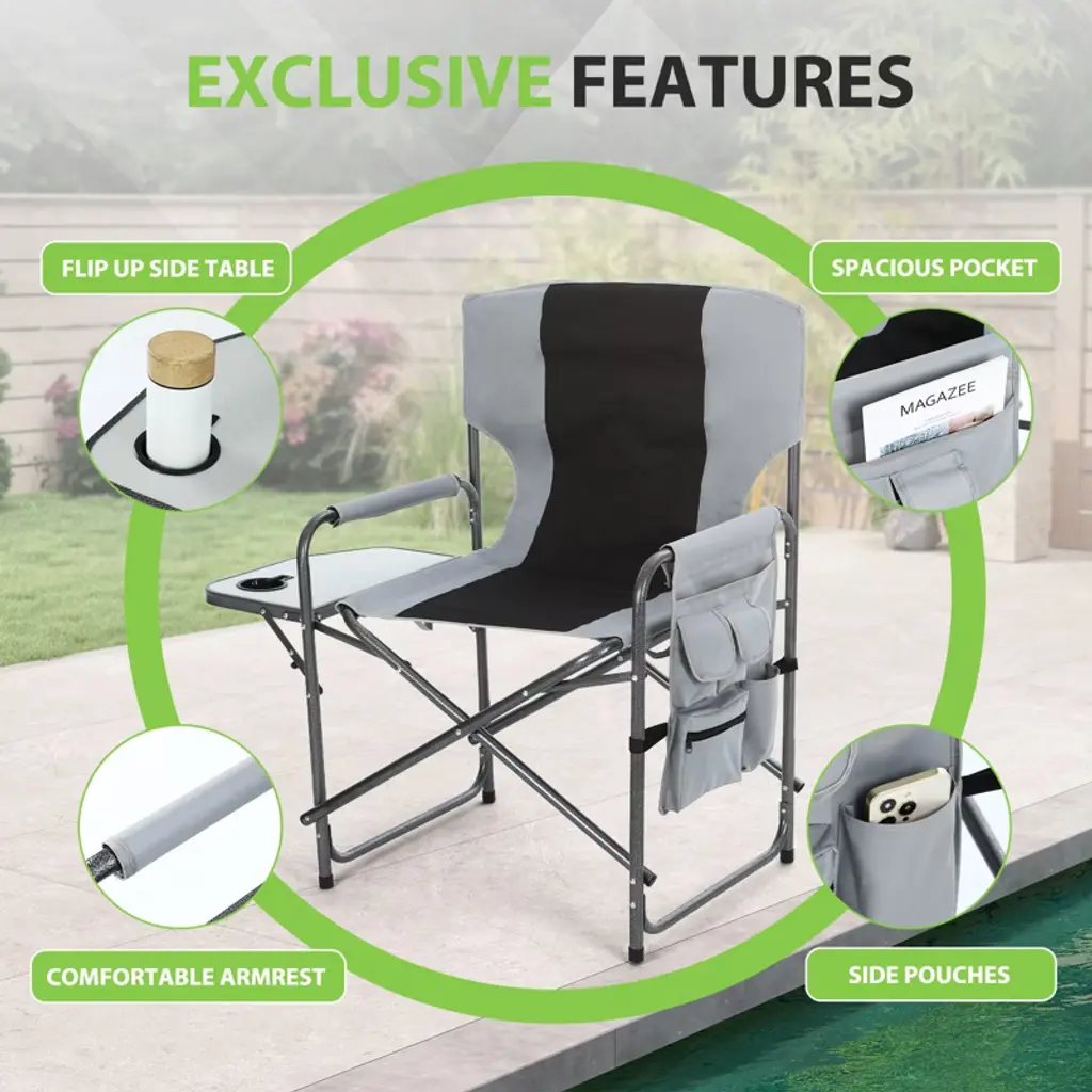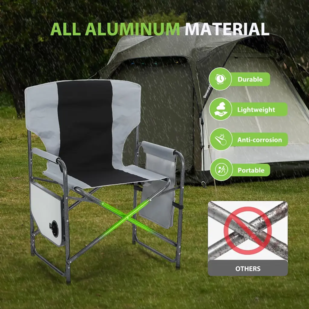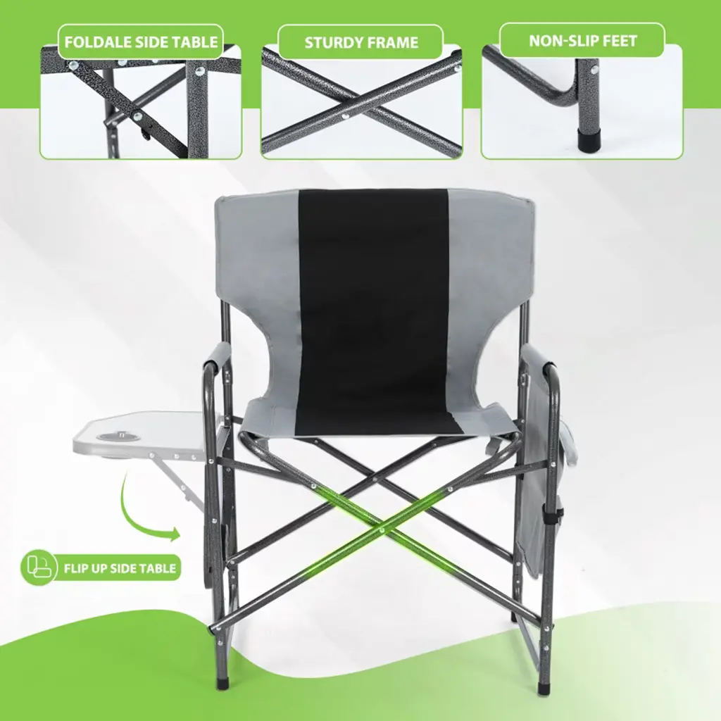 Muke Foldable Aluminum Director’s Chair With Side Table & Pocket, Lightweight Heavy-duty Armrest Seat For Camping, Patio, Events & Indoor Use