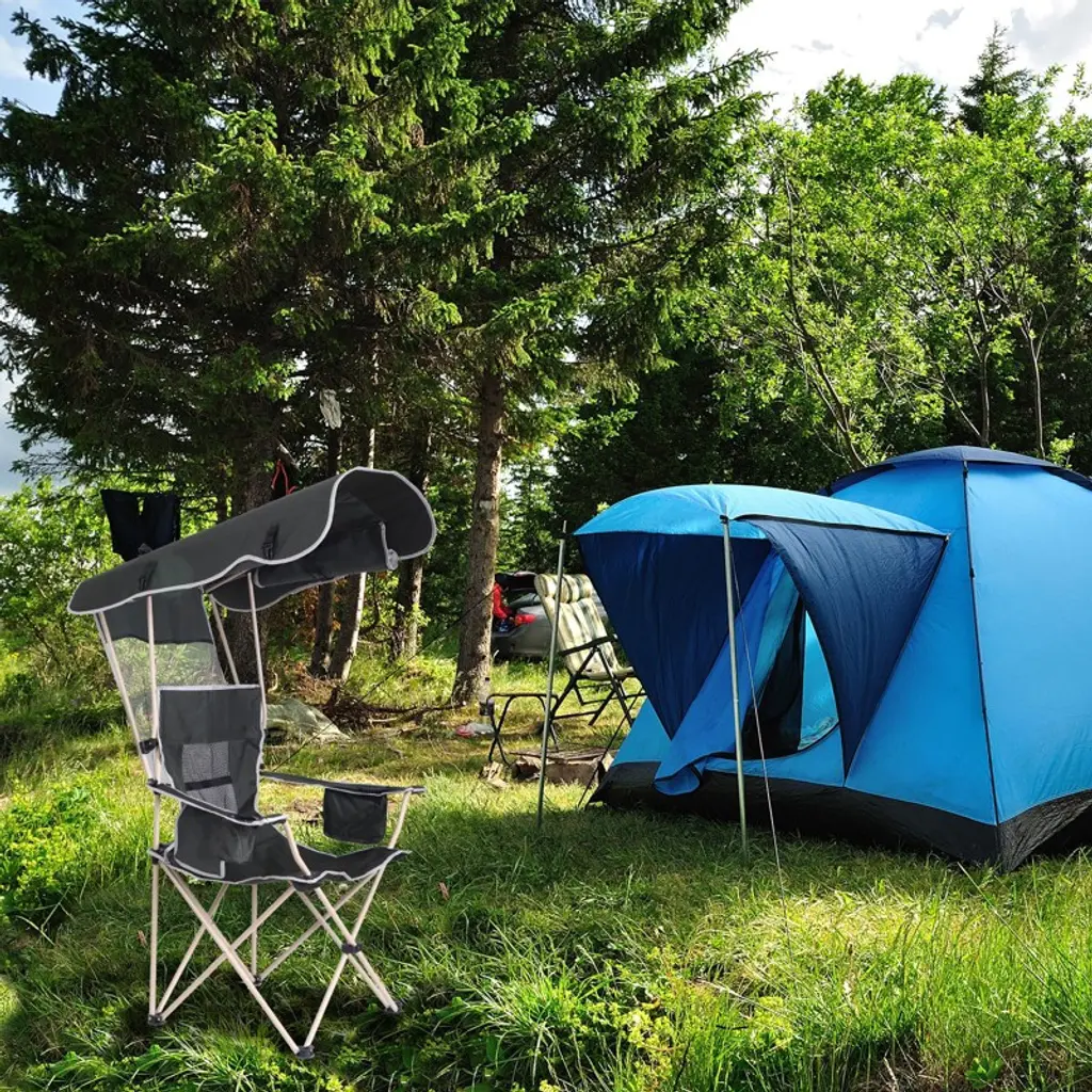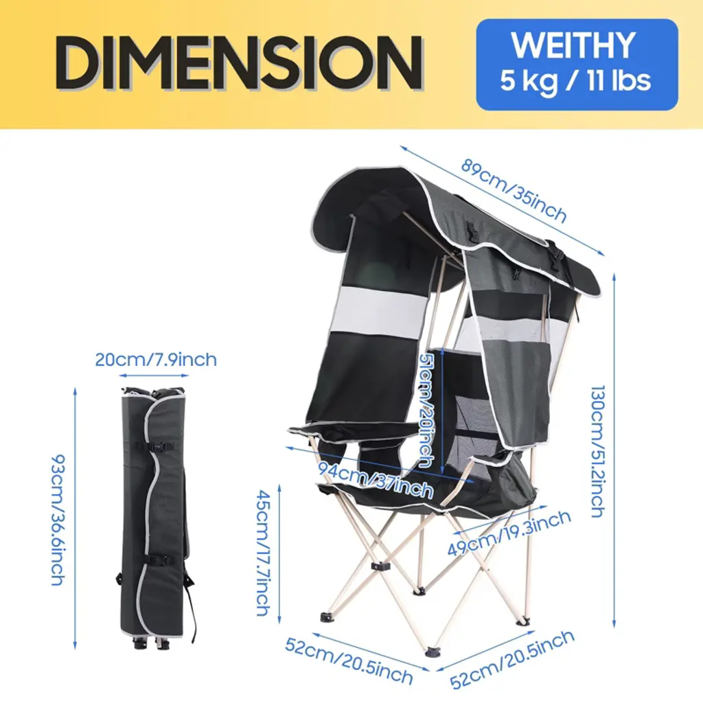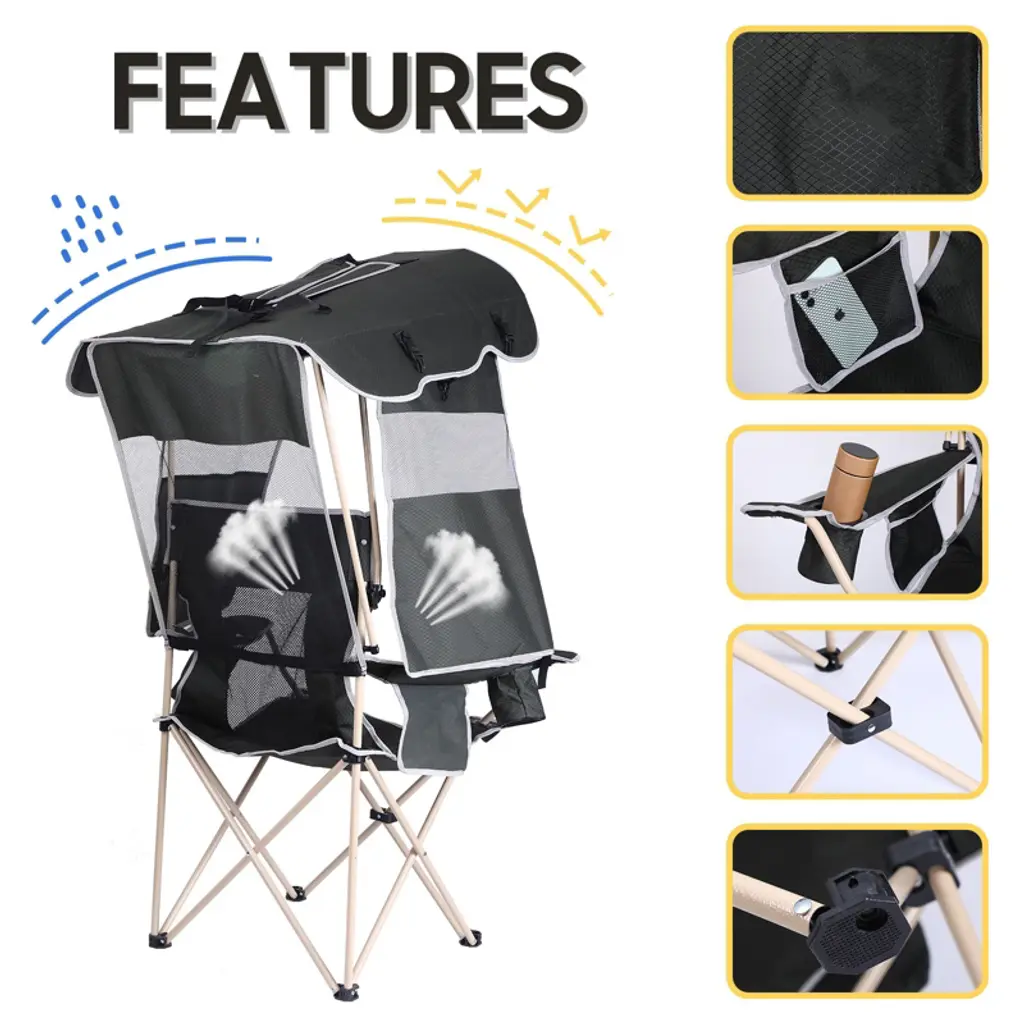 Enjoy ultimate comfort and sun protection with our folding camping chair featuring a detachable adjustable canopy, breathable mesh back, and ergonomic design. Lightweight yet strong enough to support up to 400 lbs, it’s perfect for camping, beach days, sports events, and more. Folds compactly for easy transport—your go-to chair for all outdoor adventures.