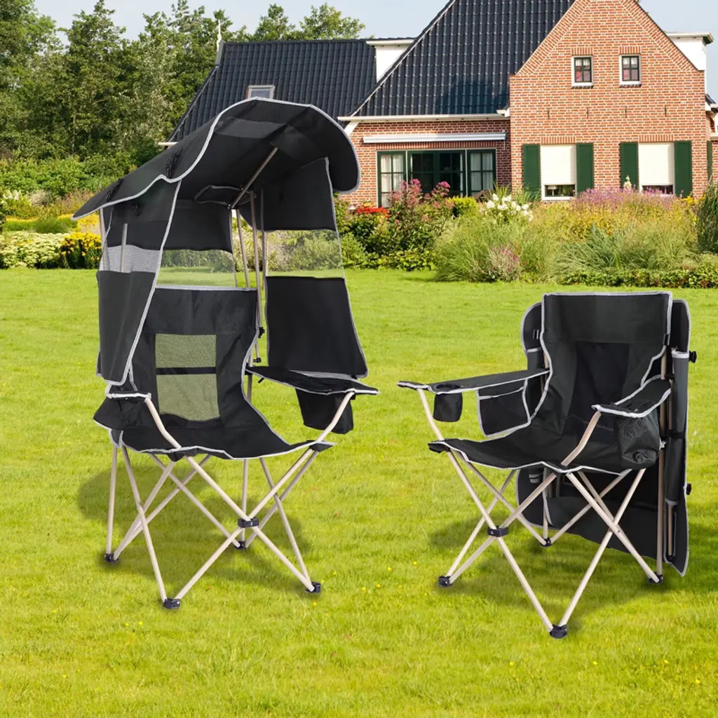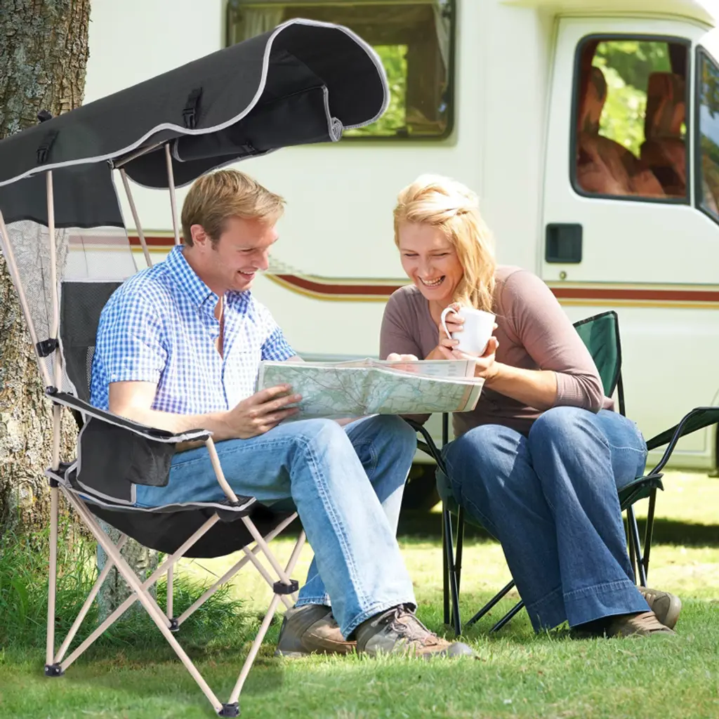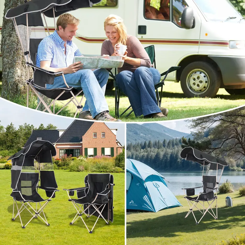 Muke Folding Camping Chair With Detachable Canopy, Cup Holder & Side Pocket, Portable Shade Chair For Sports, Beach & Camping (2 Pack)
