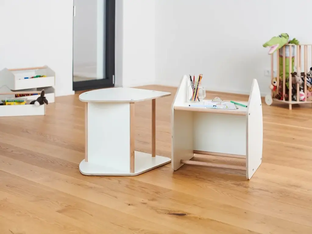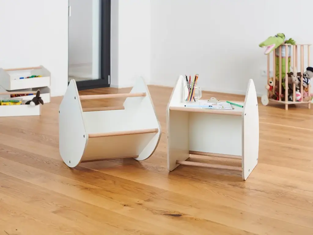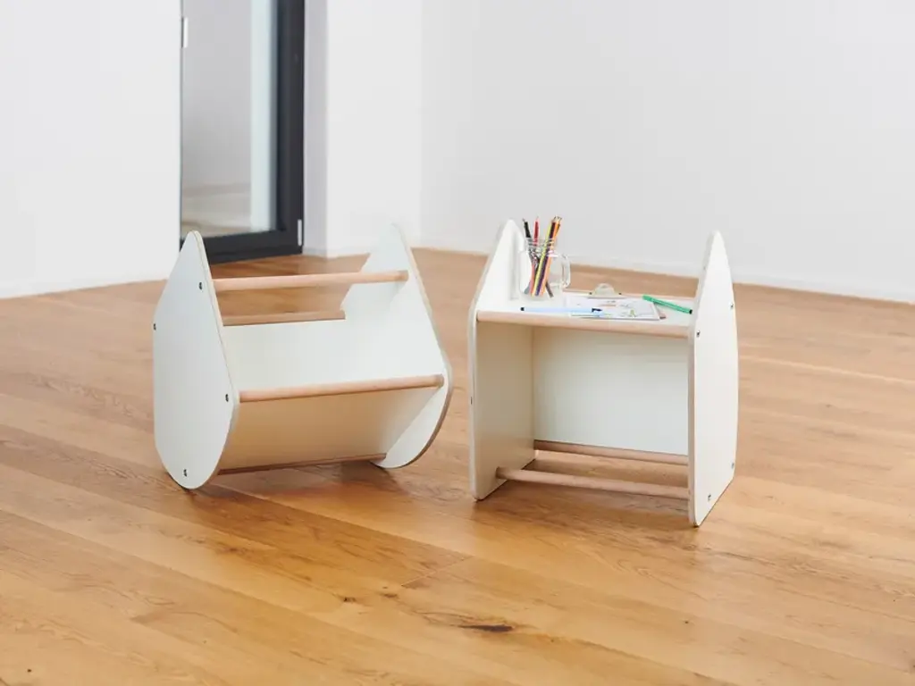 Tojo-multi is table, stool and swing at the same time - depending on how you turn it. The rounded side parts are protection and rocking ball in one. Set up, the Tojo-multi has a secure stand. Play and fun are pre-programmed.