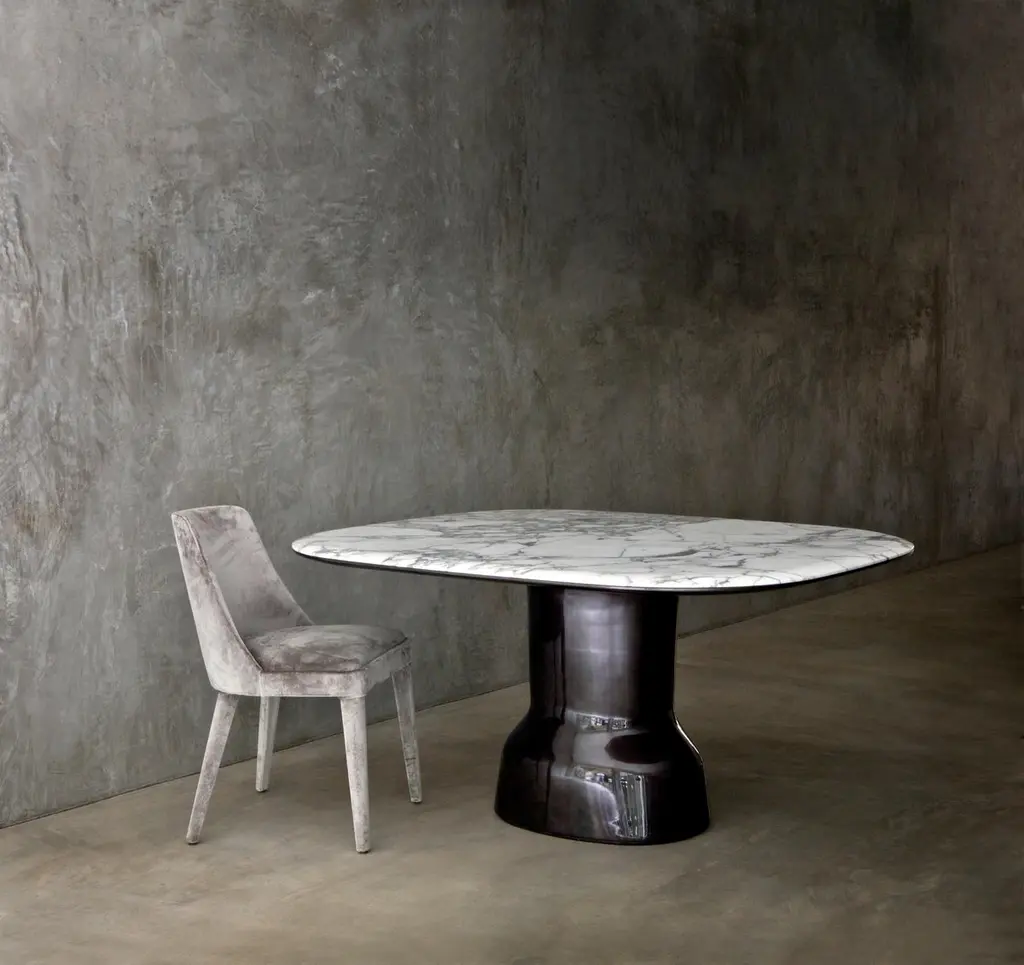 Musa 200 Ombra Silk Lacquer And Breccia Medicea Marble Table by Casa Casati Dimensions: D 130 x W 200 x H 74 cm. Materials: Ombra Silk lacquer, Breccia Medicea marble, and polyurethane resin.Available in different materials and size options. Please contact us.Inspired by the lithesome forms of classical sculpture and by Hans Arp’s smooth and powerful curves, the tables and console of the Musa series are characterised by the important plinth base with a slight oval section. Thanks to an accurate study of joints and balances, the base supports a series of different-sized cantilevered tops in marble. Ombra, Fumo, and Bronzo in “Silk” or high gloss finish are the three colours of special lacquer, exclusive to CASA CASATI, for the base and the underside of the top. The richness of tones, the absence of straight lines, and the fluidity of the curve show the simplicity of the design and the beauty of the precious marble tops, the edges gently curved as a perfect complement to the structure.!Atelier Casa Casati. Italian Lifestyle. Italian Skill. Italian Furniture.Excellence of materials, love of detail, creativity. This sums up the design philosophy of CASA CASATI. The atelier was created in 2016 by architects Bosco Fair and Emanuele Genuizzi, who, following years of experience in the field of interior and product design, bring to this project the cultural and aesthetic values of the highest Italian tradition. A tradition that takes form thanks to the work of the most qualified artisans of Brianza. It is in their hands that the “Italian Dream” becomes reality. It’s their skill which gives life to unique pieces, characterized by precious materials, sophisticated finishes, and unusual combinations which never fail to surprise. Thanks to the use of natural materials and expert manual labour, each of the CASA CASATI pieces has its own ethos, showing specific characteristics which highlight their value as unique pieces. Special interior projects and limited edition pieces can be developed upon request.CASA CASATI: classic elegance and a contemporary aesthetic mix together to create something indisputably of its time.