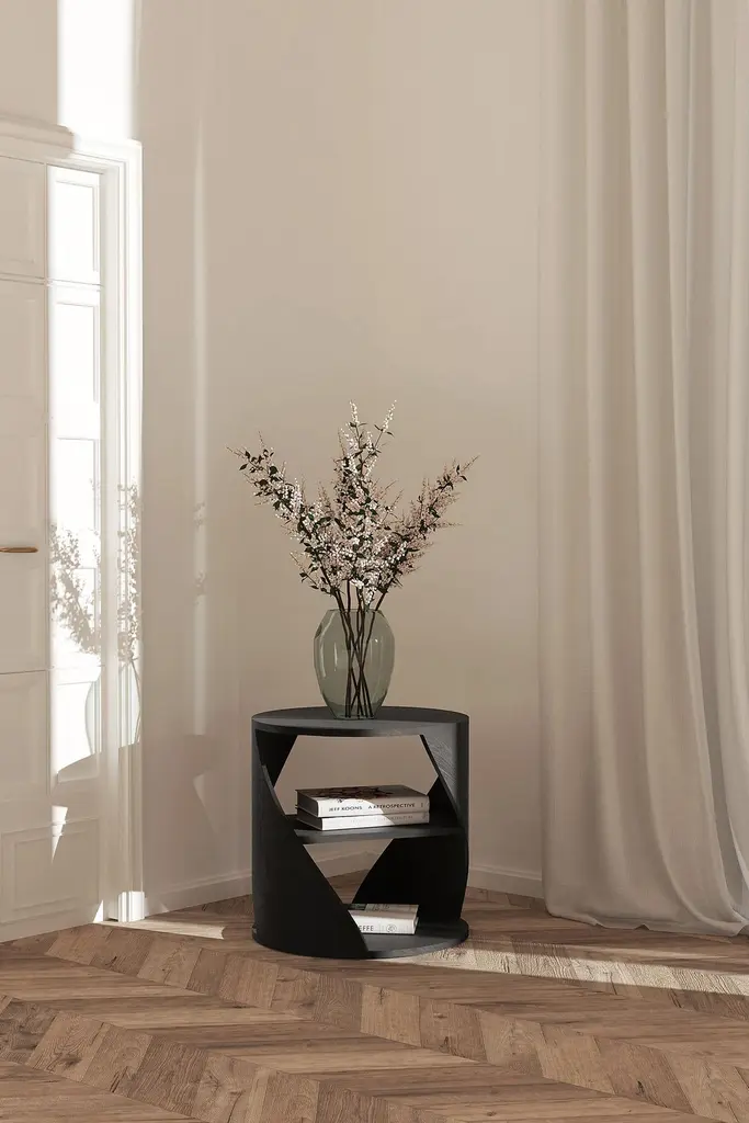 Mydna Side Table, Contemporary Nightstand In Black Wood Finish By Joel Escalona