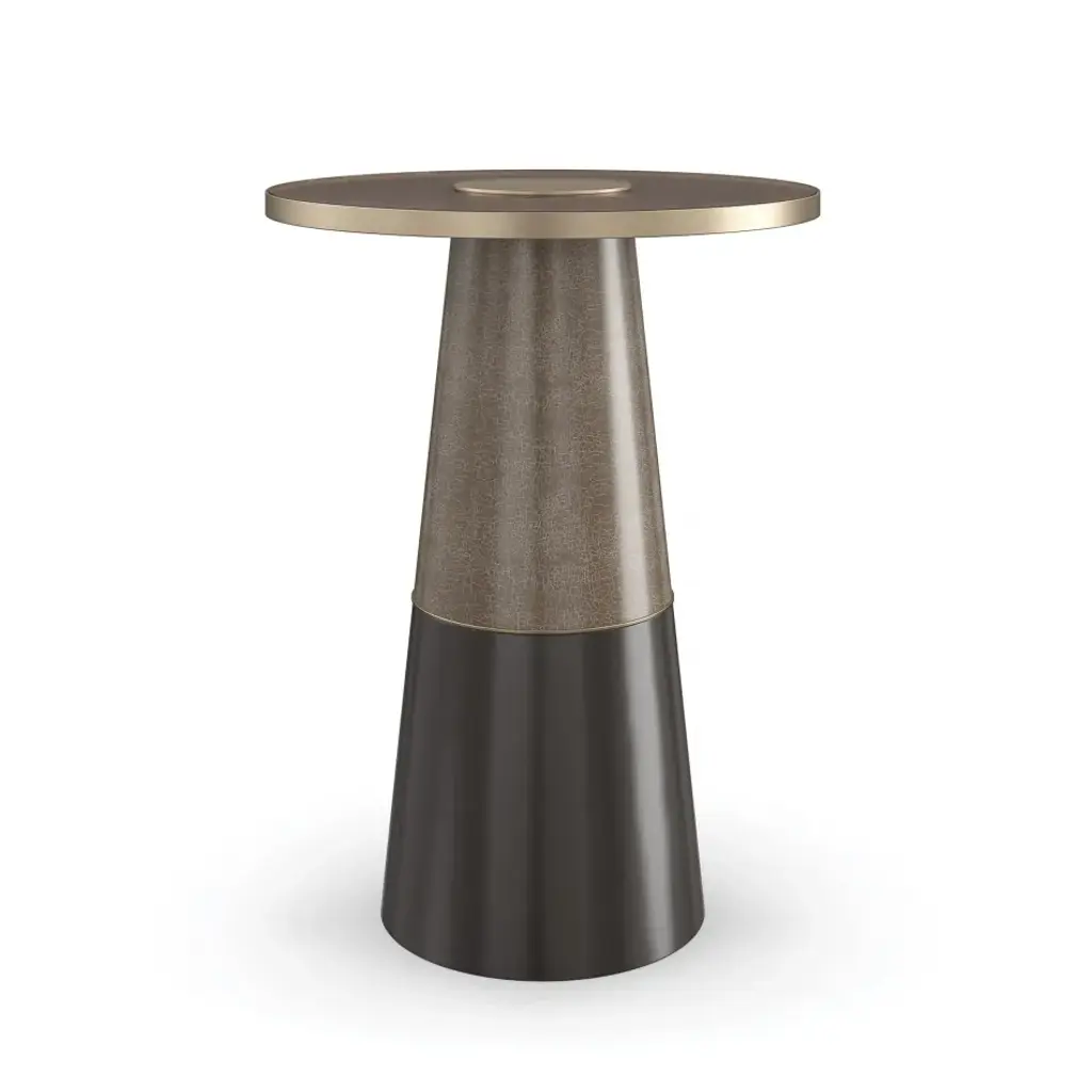 Antique Gray Wash Finished Wood With Dark Gray Glass Top And Antique Gold Edging