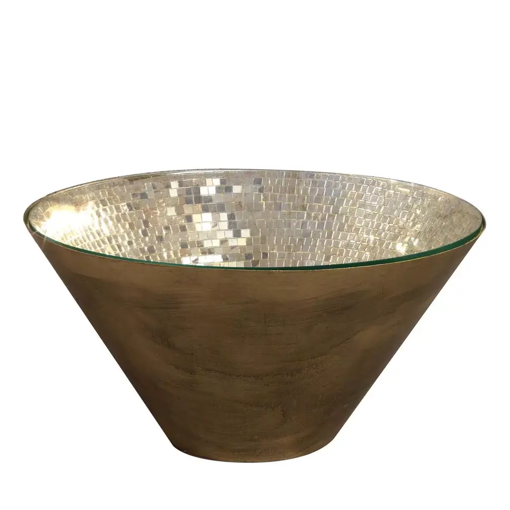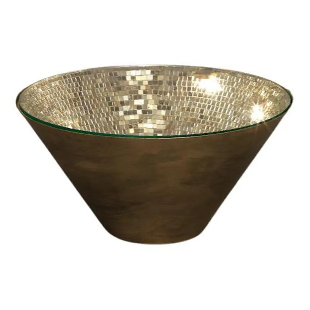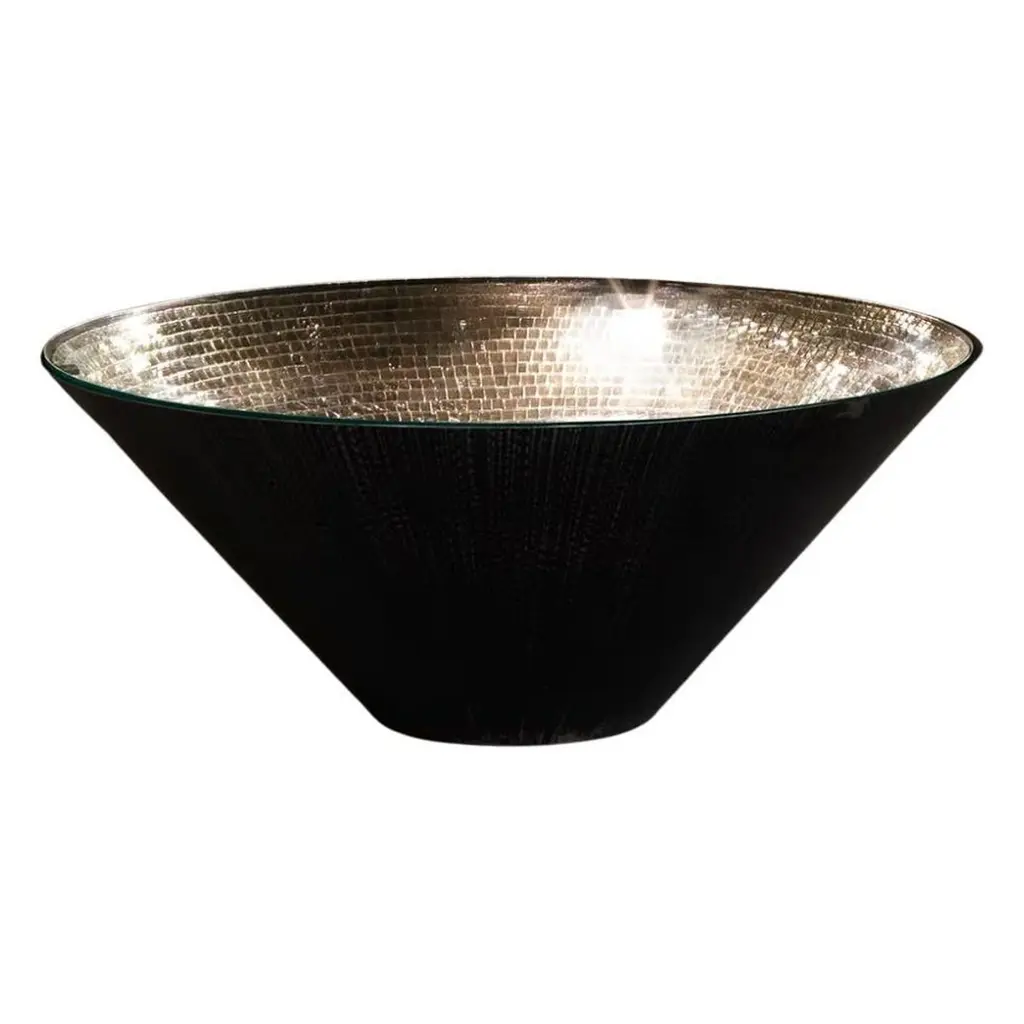 This statement-making table from the Narciso Collection is a unique combination of classic and modern that will infuse a warm and inviting ambiance as well as deliver a glamorous look in a modern living room. The cone-shaped frame of brushed iron is topped with clear glass that showcases the stunning mosaic of silver mirrored glass tiles inside in all its shimmering allure. Available also in a gold finish and the following dimensions (in cm): d 50 x H45, d60 x H60, d100 x H40, and d120 x H82.
