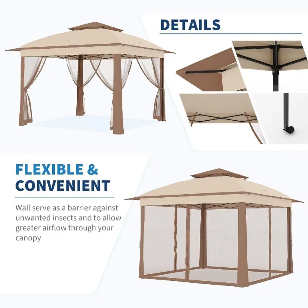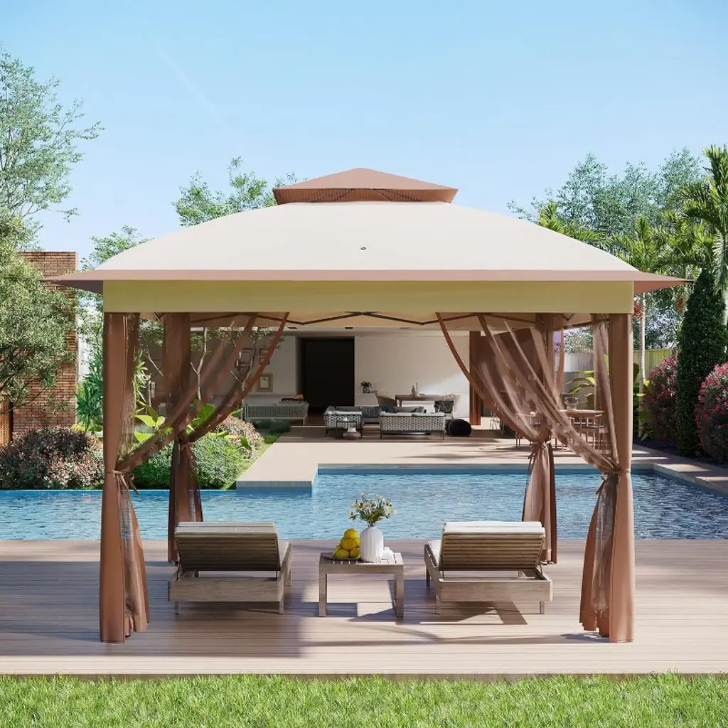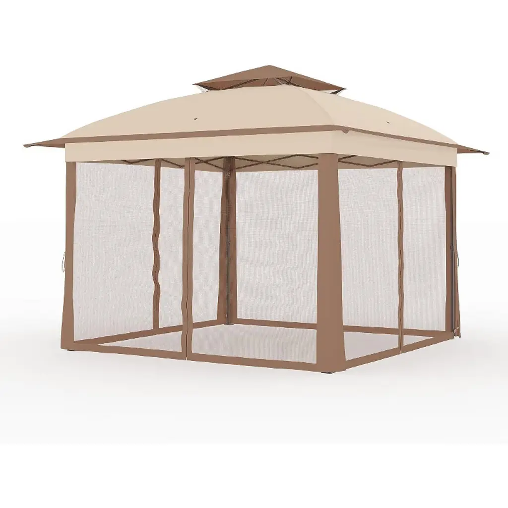 Nasitip 11x11ft Outdoor Canopy Tent With Mosquito Netting, Pop Up Instant Gazebo Waterproof With Portable Carrying Bag,khaki