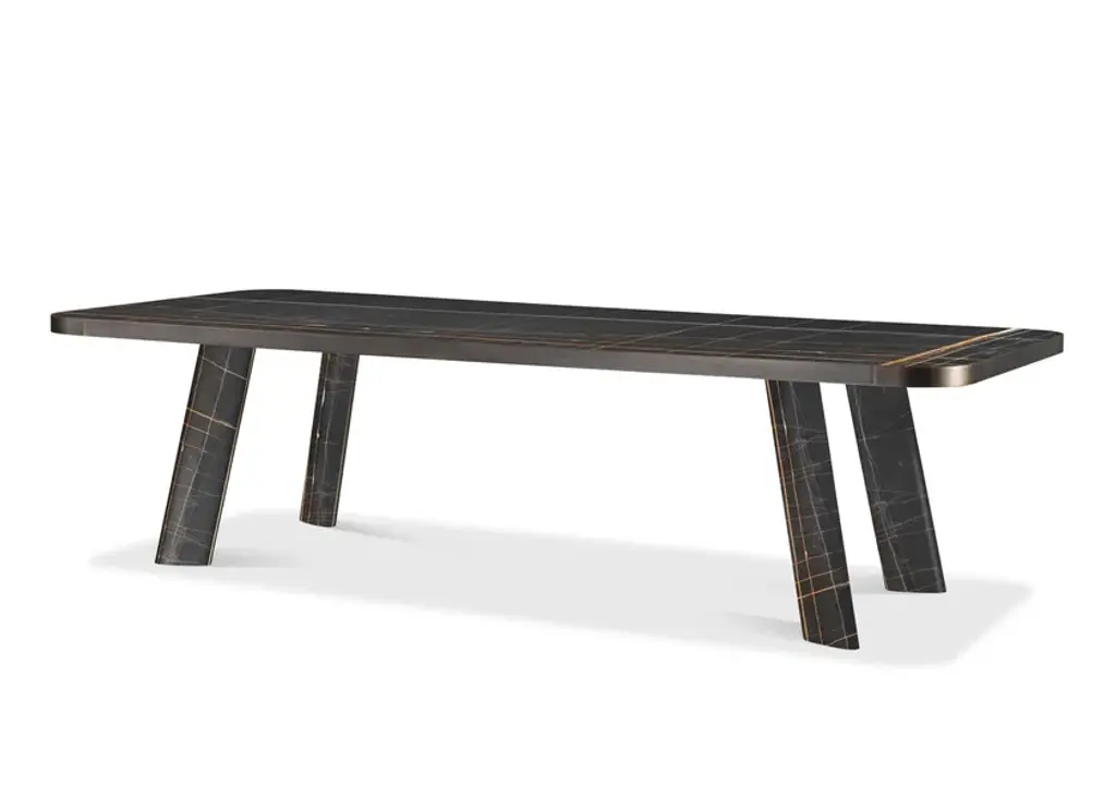 The Native table is a pure object that in its archetypal essentiality become new classic. Available in two versions: round or rectangularly rounded on the corners and either an oak or marble finish, with the top edged in burnished metal.Technical featuresStructure: Supporting 30mm wood panel for the top and for fixing legs. Perimetral aluminium, curved for the round versions and extruded with die casted corners in house at Ghidini1961 for the rectangular versions.Top Finishes: 20mm Sahara Noir marble (total thickness with the supporting panel 50mm)., legs in Sahara Noir marble.