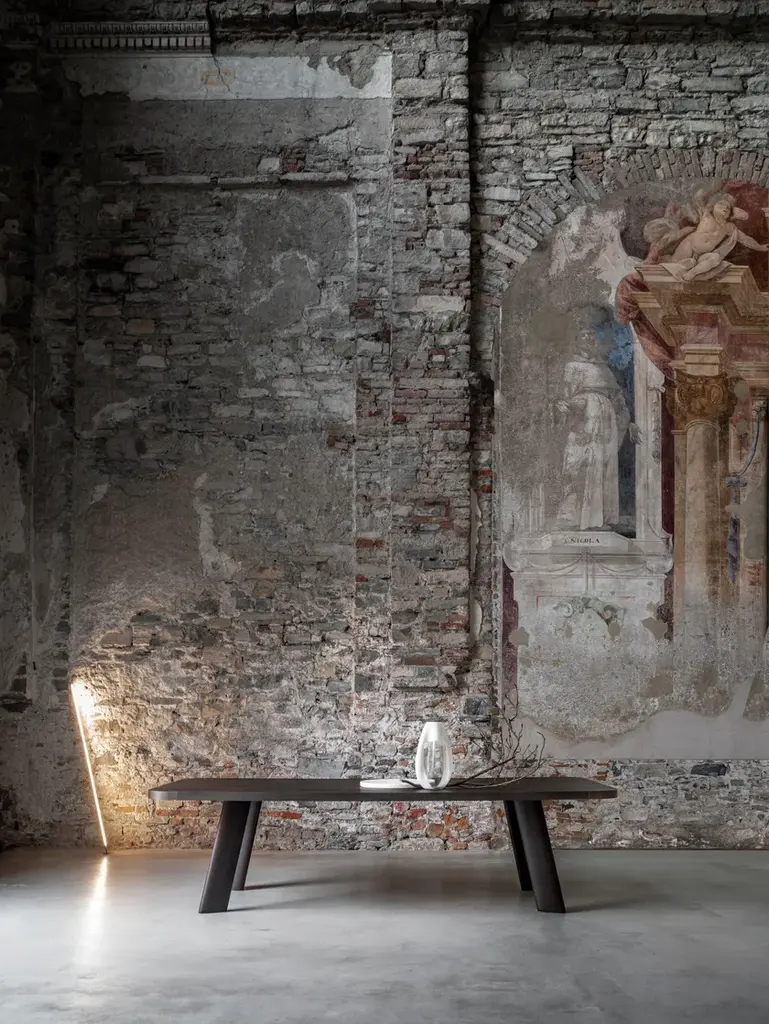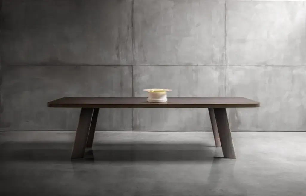 The Native table is a pure object that in its archetypal essentiality become new classic. Available in two versions: round or rectangularly rounded on the corners and either an oak or marble finish, with the top edged in burnished metal.Technical featuresStructure: Supporting 30mm wood panel for the top and for fixing legs. Perimetral aluminium, curved for the round versions and extruded with die casted corners in house at Ghidini1961 for the rectangular versions.Top Finishes: 20mm wood, legs in solid wood.
