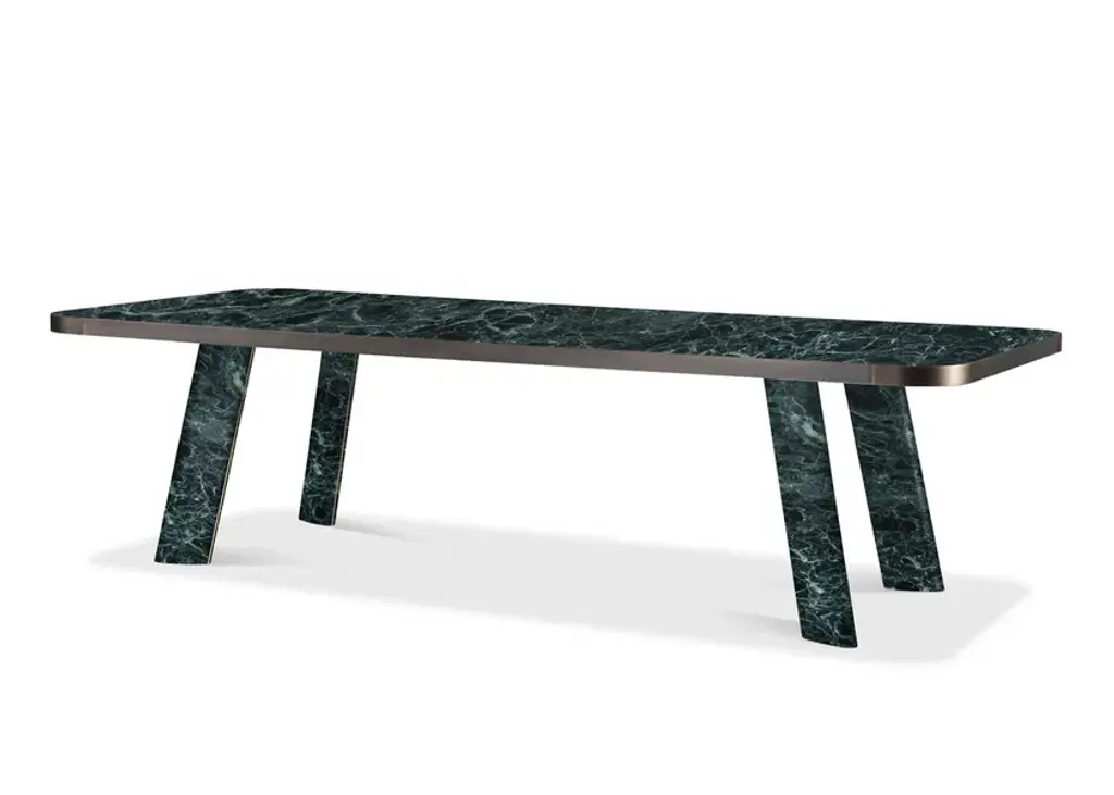 The Native table is a pure object that in its archetypal essentiality become new classic. Available in two versions: round or rectangularly rounded on the corners and either an oak or marble finish, with the top edged in burnished metal.Technical featuresStructure: Supporting 30mm wood panel for the top and for fixing legs. Perimetral aluminium, curved for the round versions and extruded with die casted corners in house at Ghidini1961 for the rectangular versions.Top Finishes: 20mm verde Alpi marble (total thickness with the supporting panel 50mm)., legs in Verde Alpi marble.
