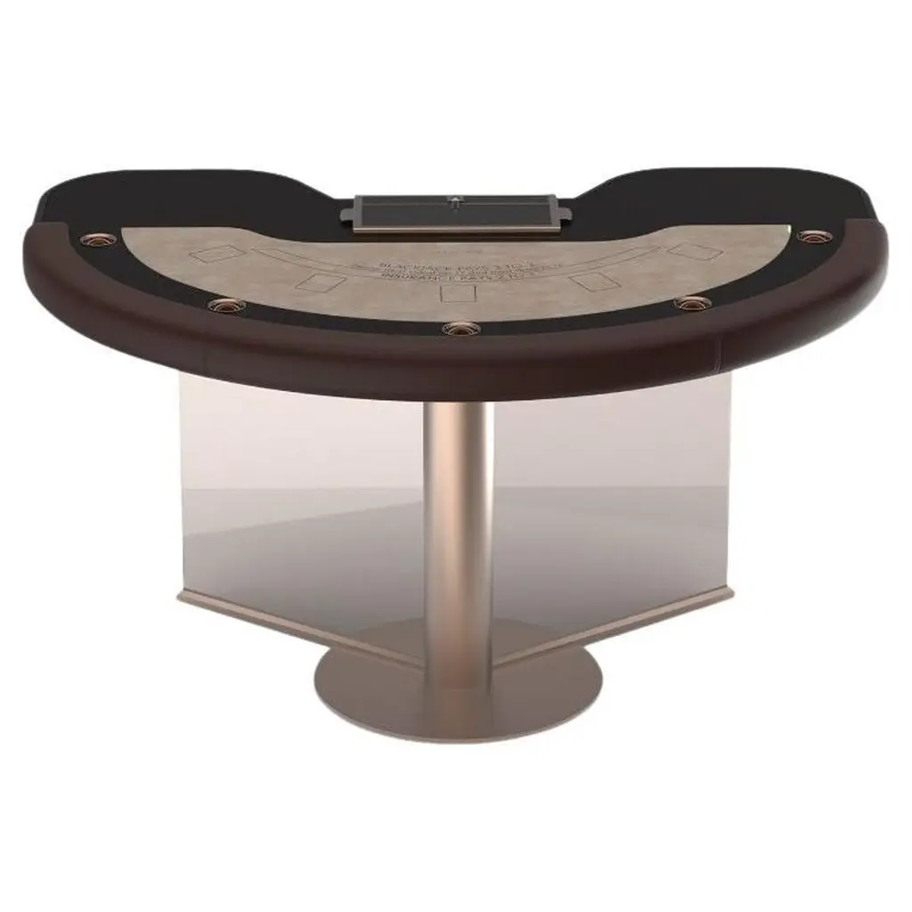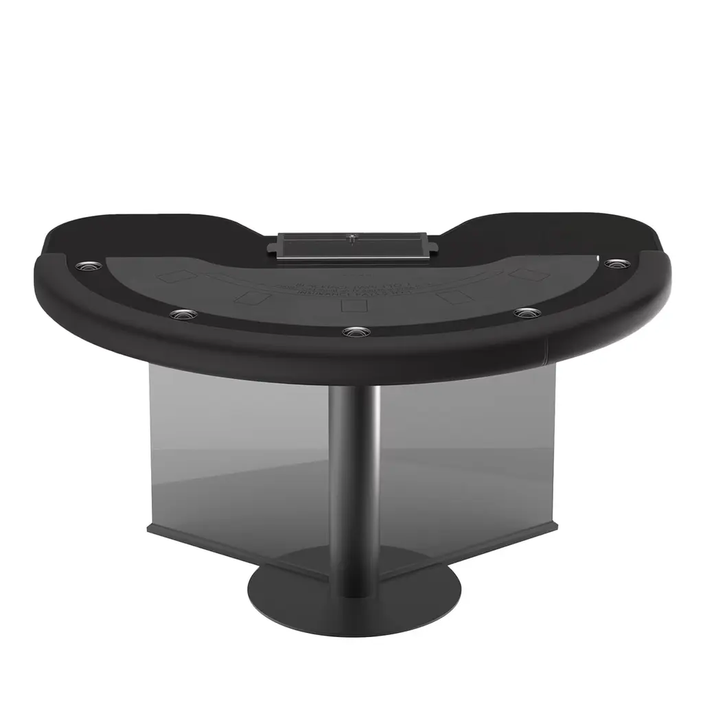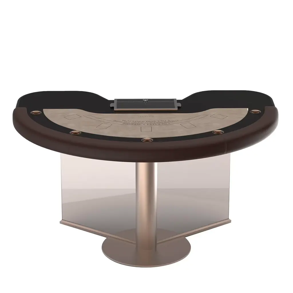 Designed to take on the dealer with the confidence of naturally superior players, the Tableswin Blackjack series adds the ace to any 10 point card. Designed by Marc Sadler. Fully customizable, pro quality microfiber felt, cards and ceramic chips make sure that Natural 21 offers exclusive signature style. Designed to enhance both the table’s luxury aesthetic and rigorously tested ergonomic features, soft padded leather arm rails and inset drink holders ensure superior comfort, hand after hand.