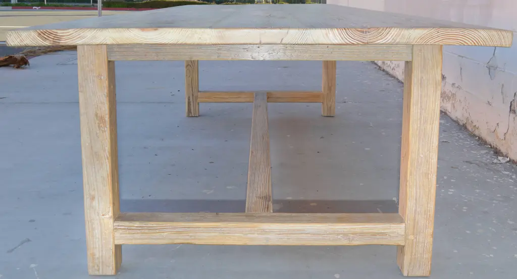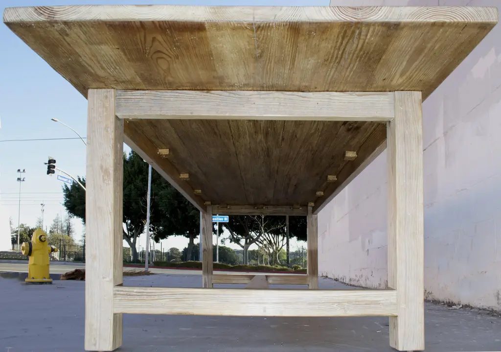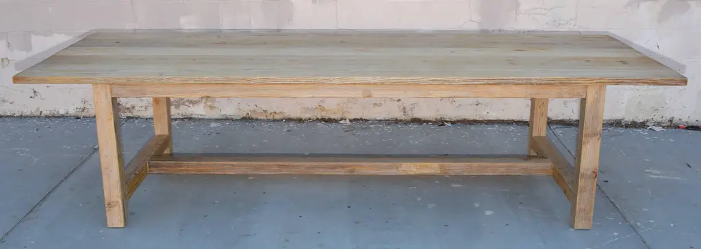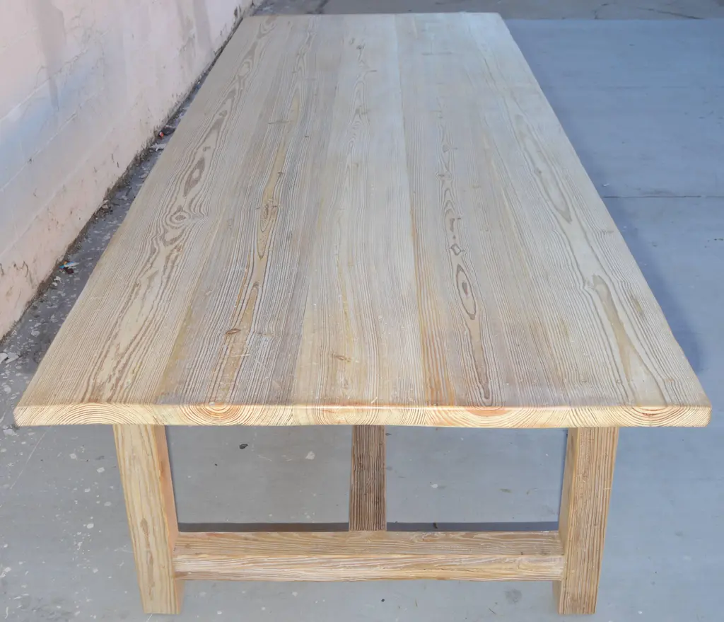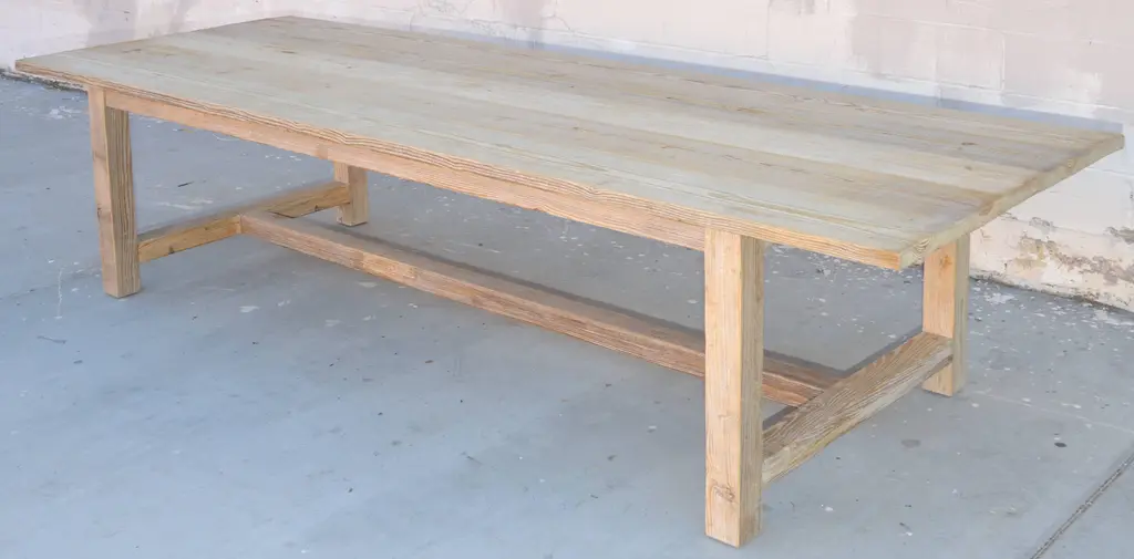 Rustic farm or harvest table made from vintage, reclaimed wood with natural distress. The quoted price applies to sizes up to 10 feet, however this table can also be custom built in any size up to 16 feet in length using this same reclaimed, vintage wood! Each table is hand made in our own workshop in Los Angeles. We use only traditional carpentry techniques, no nails or metal fasteners of any kind. Just mortise and tenon construction reinforced with hand-cut wooden dowels. It will take 9-10 weeks to make this piece