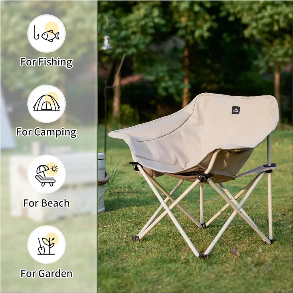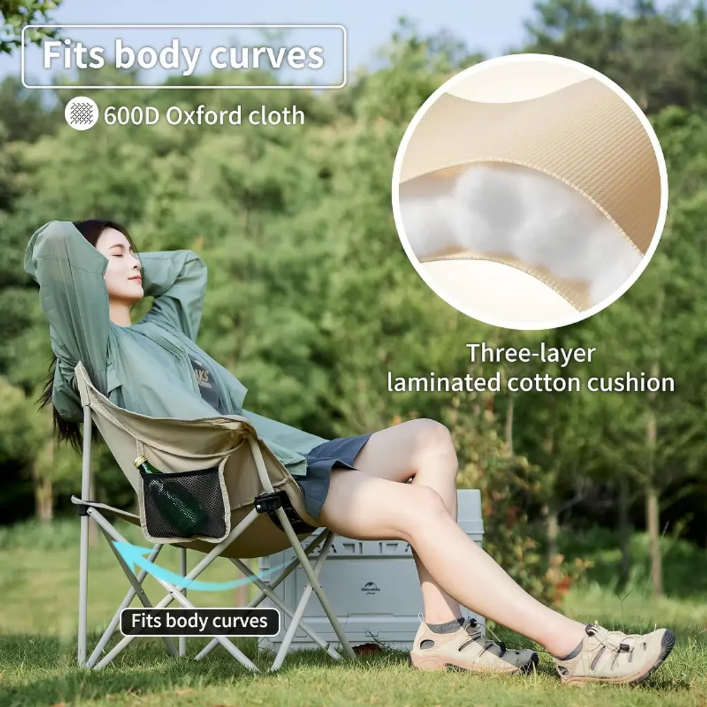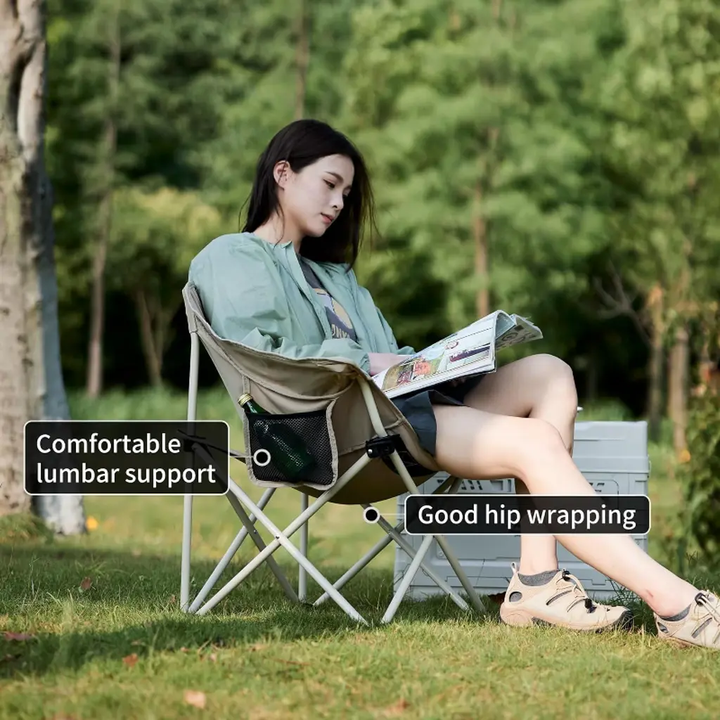 Naturehike Foldable Camping Chair Can Bear 110 Kg Fishing Chair Portable Folding Chair With Armrest And Two Pockets, White