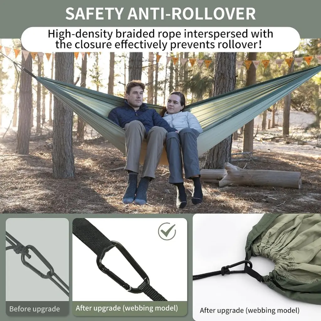 Comfortable Fabrics: The swing is made of 240T Pongee, soft and comfortable, skin-friendly and breathable. Good tear resistance, designed for outdoor use. The hammock can be shaped according to your body shape for maximum relaxation. You can enjoy a comfortable and relaxing good time in the hot summer!