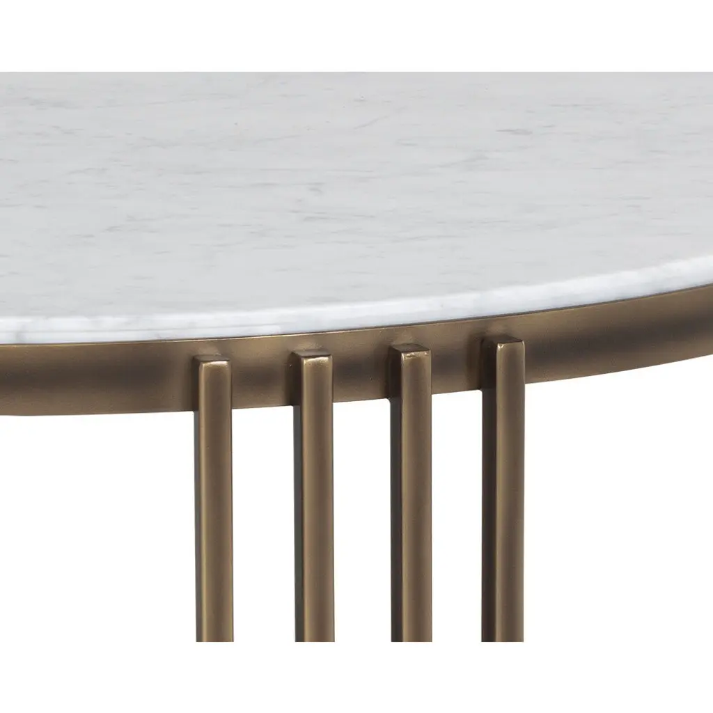 Introduce an element of grandeur to any space with this marvelous coffee table. Features a 21mm solid Carrara white marble top with a 6mm smoked tempered glass bottom. Completed with a stylish powder-coated metal frame in a rustic bronze finish. Coordinating console and end tables also available. As marble is a natural material, unique veining, pitting, fissures, micro-cracks and colour variations are all characteristics that add to the uniqueness and beauty of each piece.