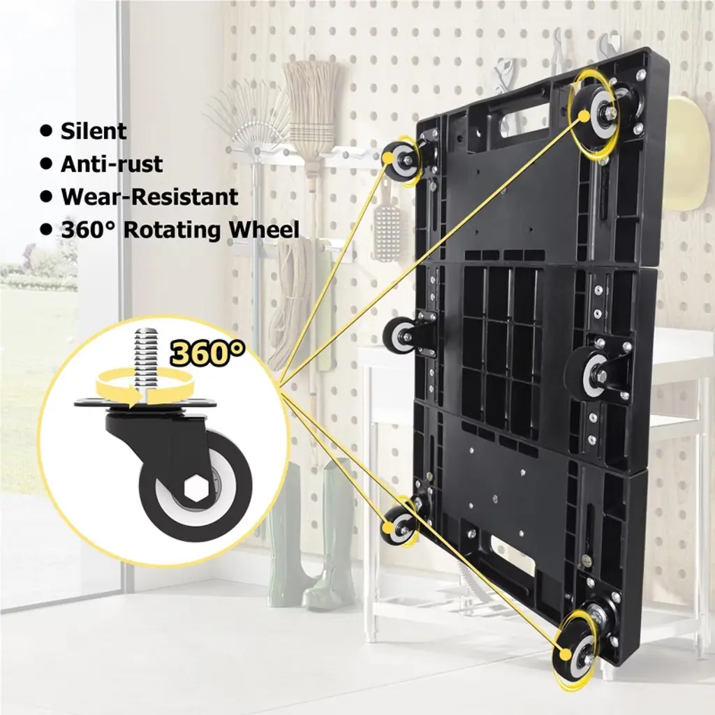 Naysaye Folding Hand Truck 330lbs Capacity Portable Dolly Cart With 6 Wheels And Elastic Rope For Easy Moving, Black, 25"*10"*2"