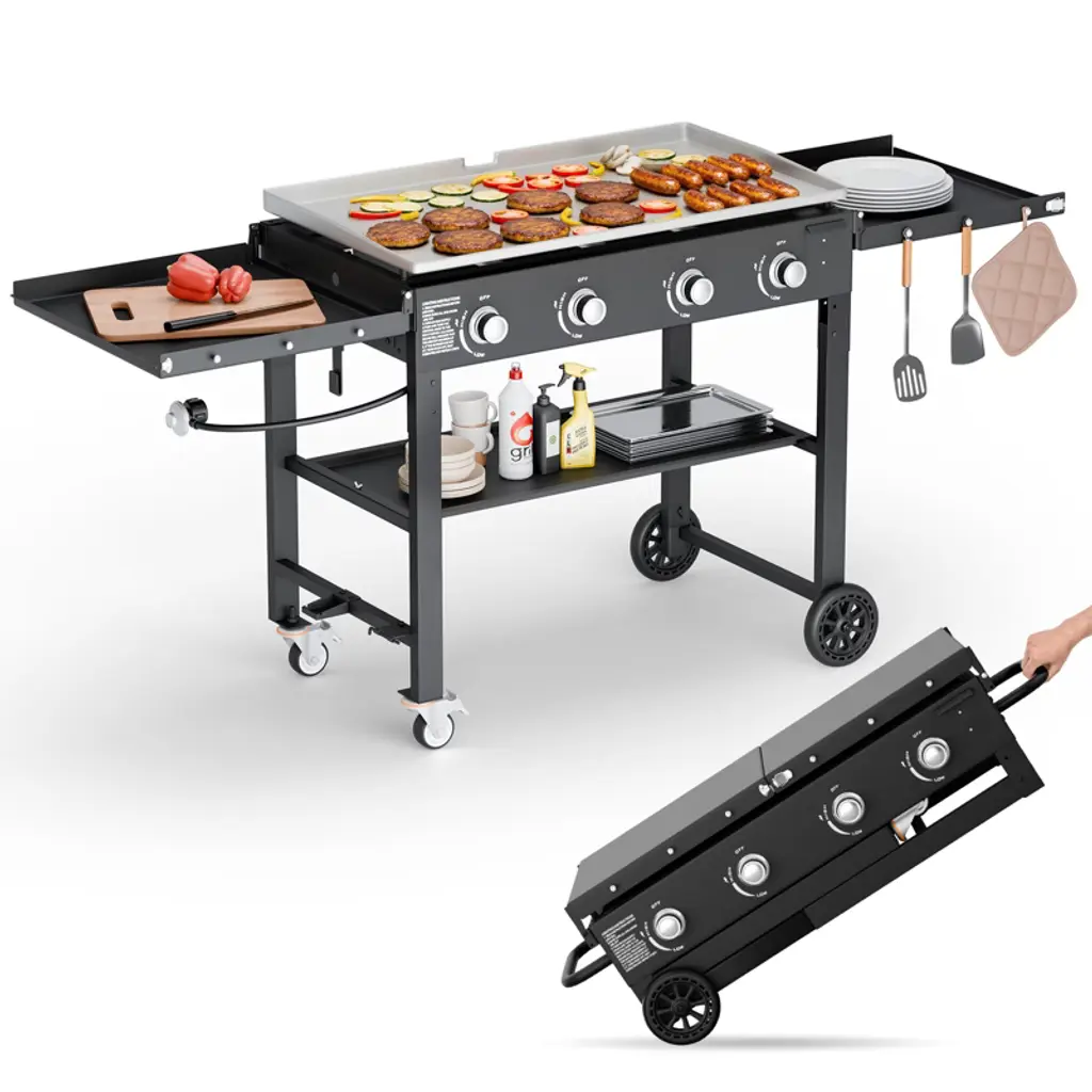 NAYSAYE Grill Racks Portable Charcoal Grill offers a versatile 2-in-1 design with a grill grate and enamel pan for grilling, frying, and searing meals outdoors. Its foldable, compact design with detachable legs makes it easy to transport, and the carry bag ensures convenient storage. Adjust the grill’s height with four rotary knobs for personalized cooking. The large charcoal tank is easy to clean, and the grill features ample storage with two side trays and a bottom shelf for your essentials.