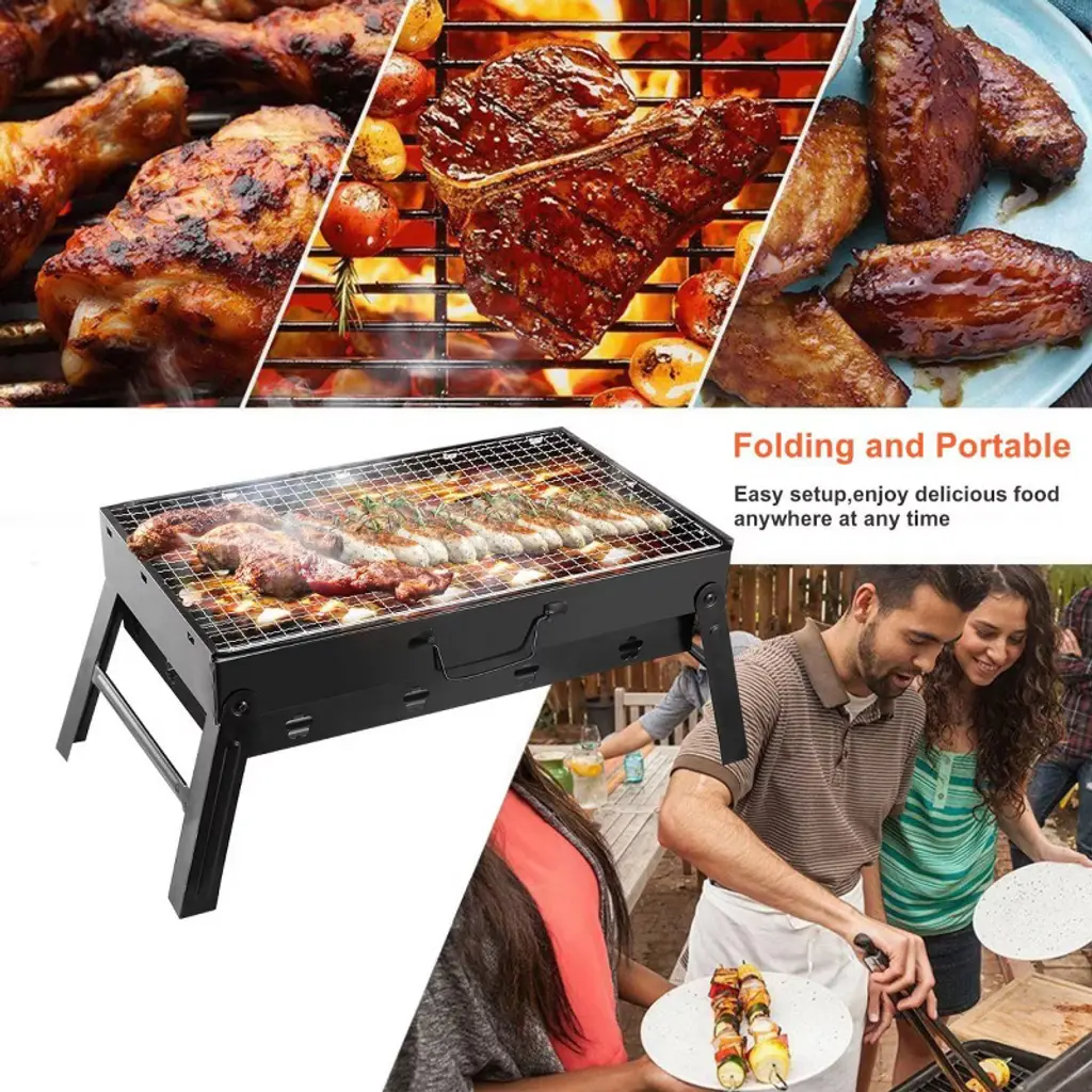 Naysaye Grill Racks Portable Foldable Bbq Grill With High Heat Resistance For Outdoor Cooking, Black, 17.7"*17"*11"