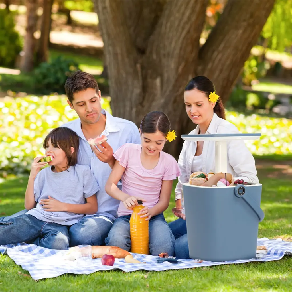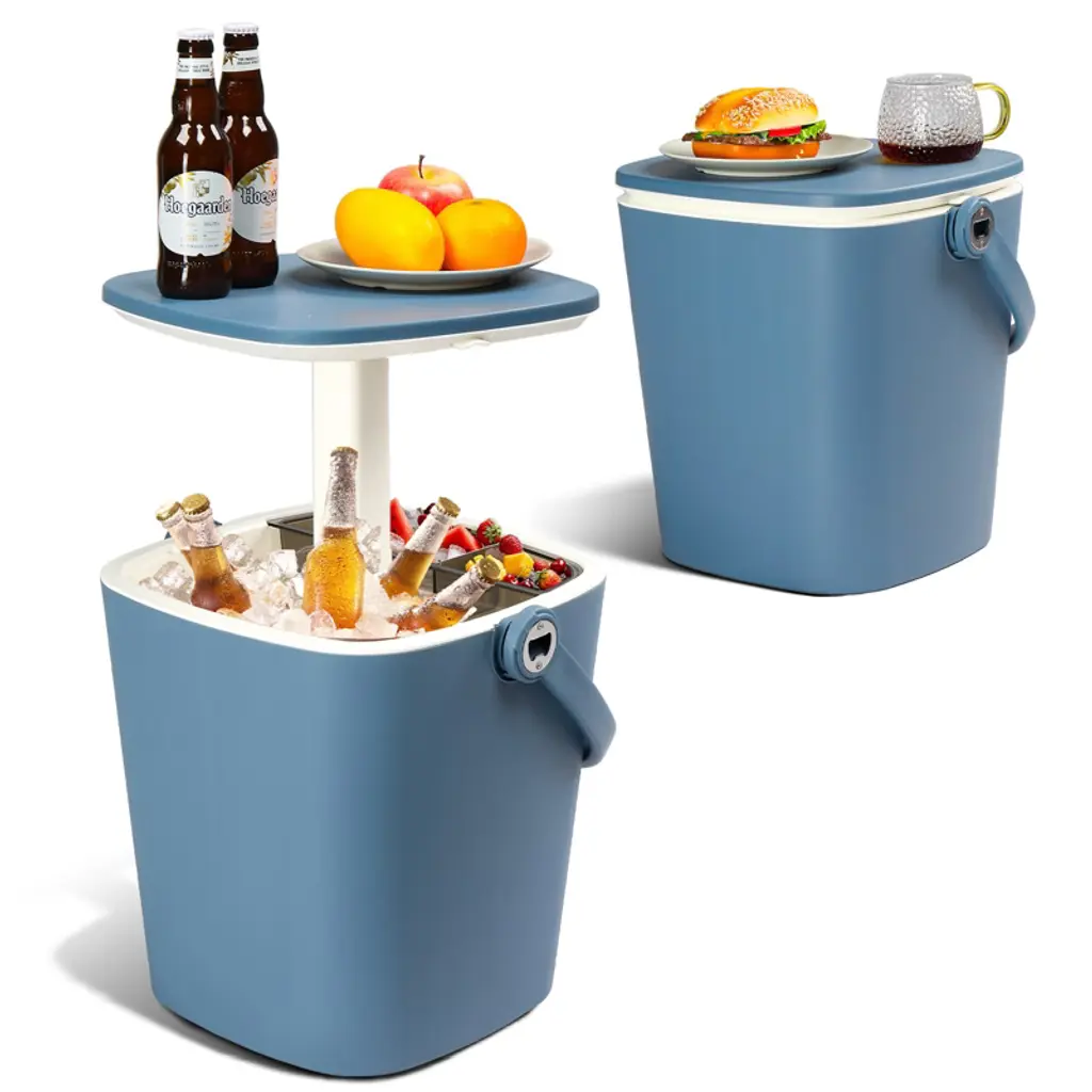 Naysaye Patio End Table 4Gallon Cooler Table Retractable Lid Built In Bottle Opener For Outdoor Use, Blue, 14.57"*13.39"*22.83"