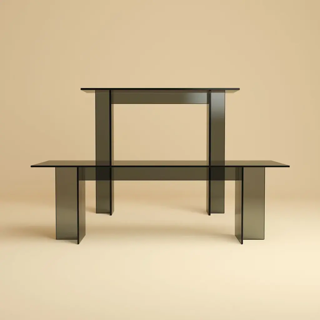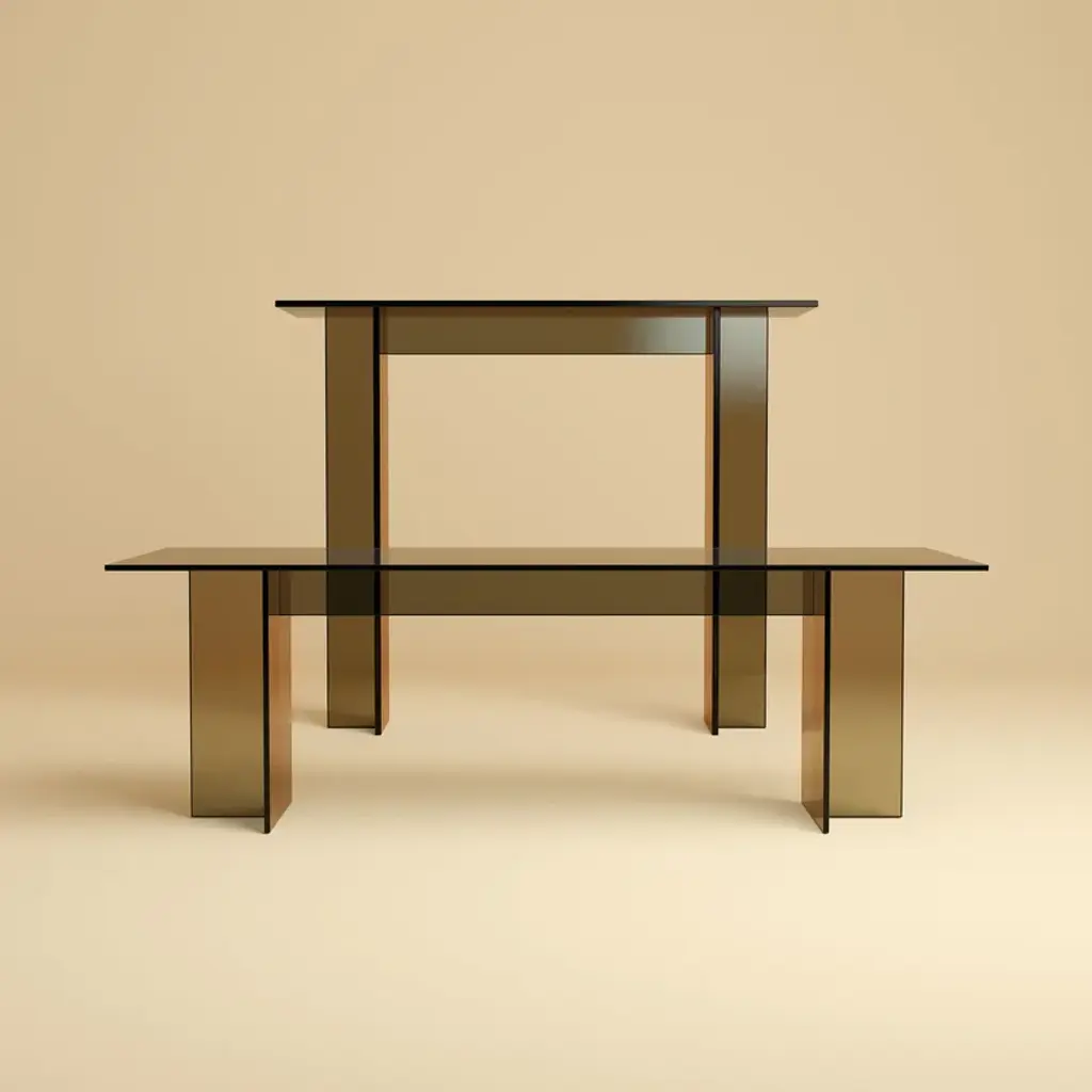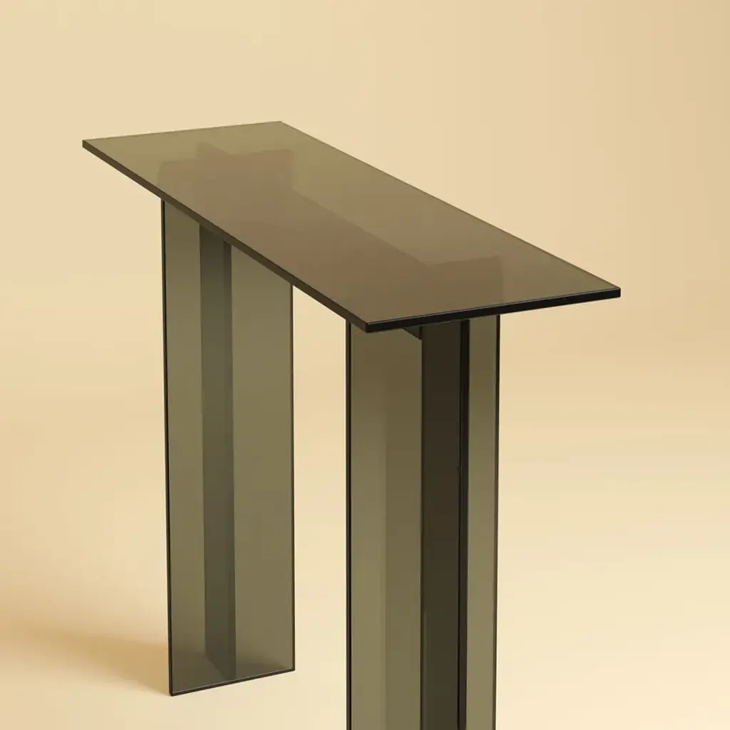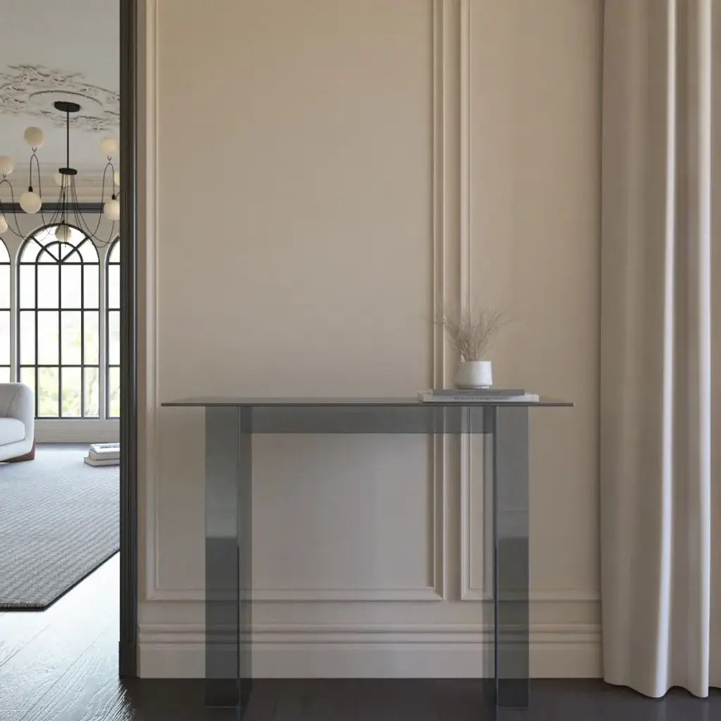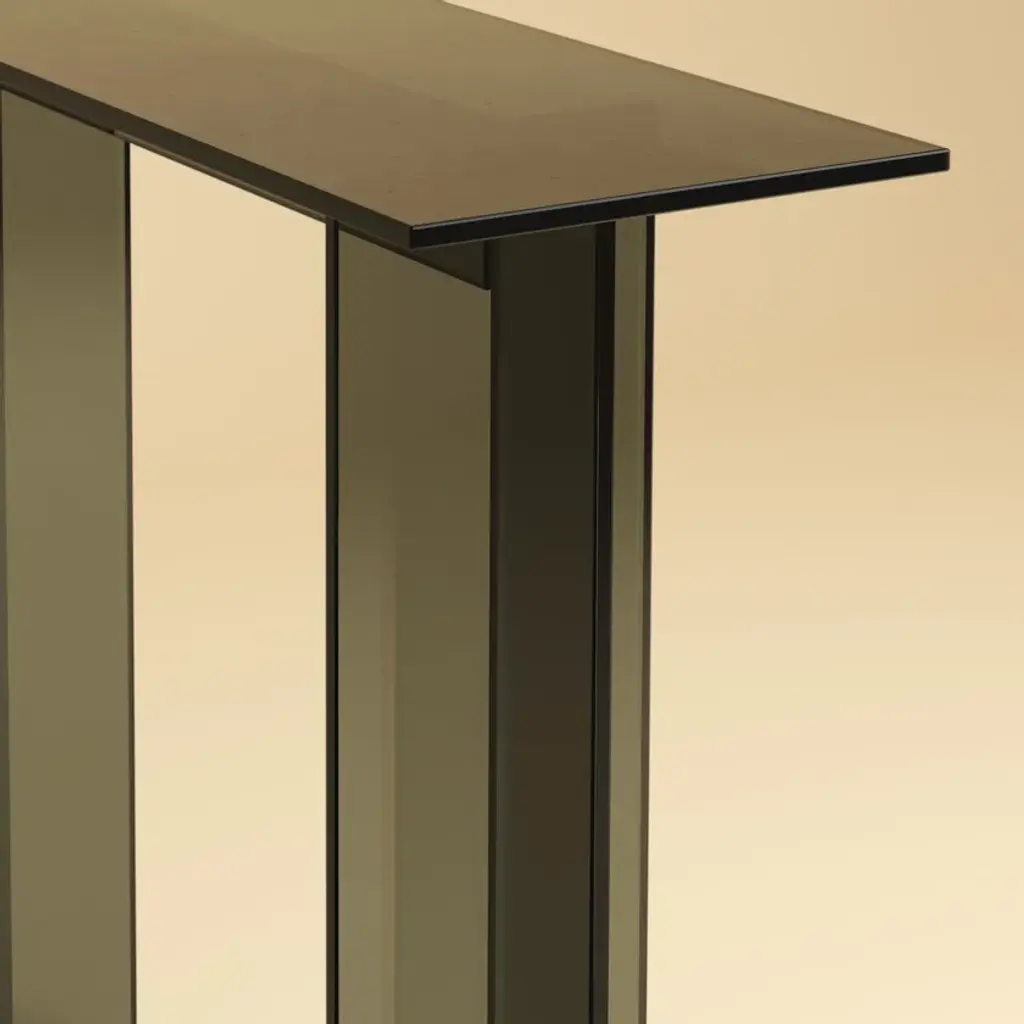 Naz is a console table by Lebanto, that blends contemporary design and Italian craftsmanship. Made from premium glass, this elegant console table is available in bronzed or smoked finishes, adding a sophisticated touch to any space. Its sleek, minimalist design creates a sense of openness, making it perfect for modern entryways, living rooms, or office spaces. Handcrafted in Italy, the Naz Console Table combines functionality with a refined aesthetic. The bronzed finish offers a warm, luxurious tone, while the smoked glass brings a modern, cool vibe, allowing you to choose the style that best suits your décor. Designed to enhance your home with its clean lines and reflective surfaces, this table is ideal for showcasing art, décor, or everyday essentials.