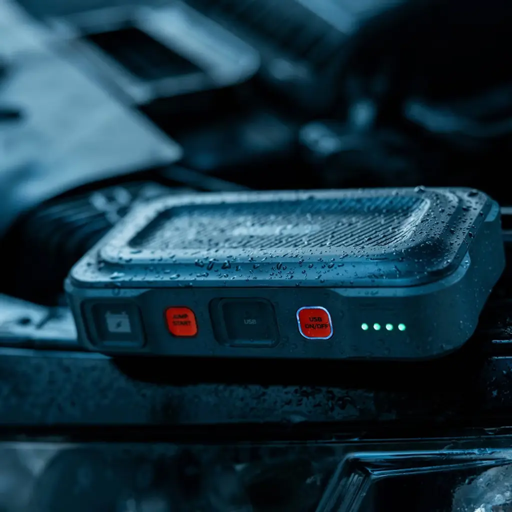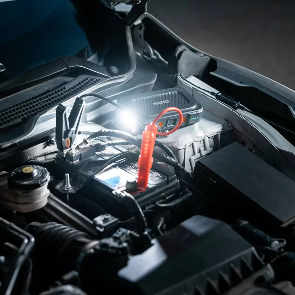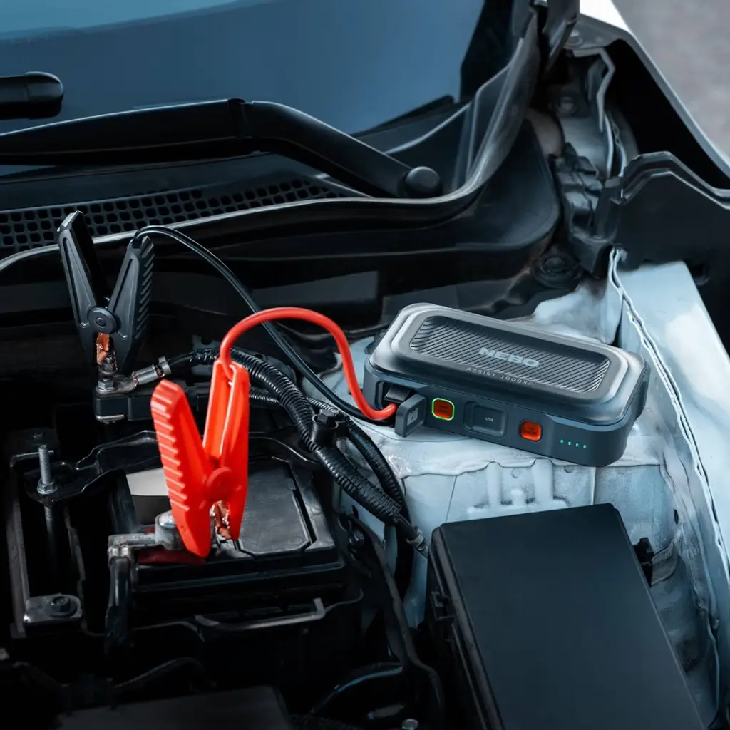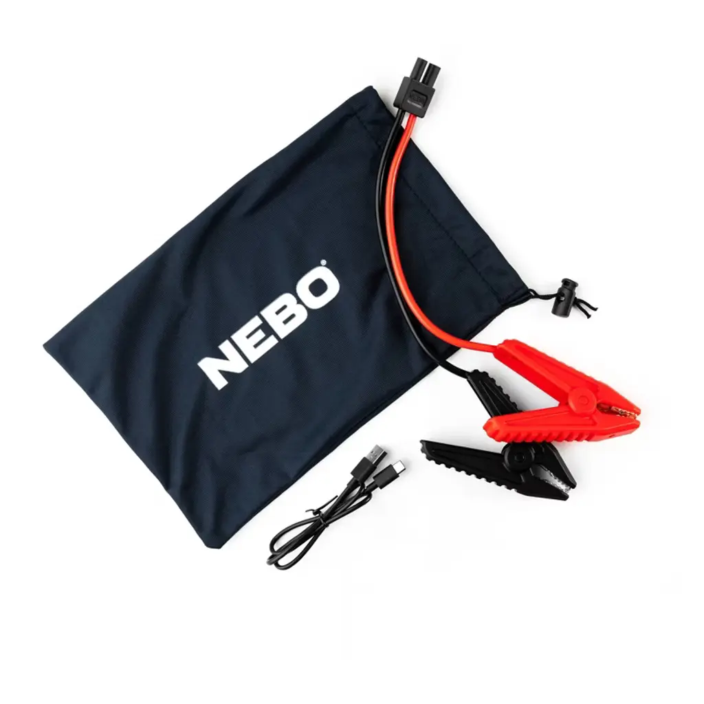 The inconvenience of a dead car battery is always an unwelcomed surprise and jump starting a vehicle can be intimidating. Take charge of roadside emergencies with the NEBO Assist™ 1000XP jump starter. With 1000 peak amps, you can confidently jump start any 12-volt car, motorcycle, or ATV battery. The simple 3-step jump start process is conveniently printed on the microfiber storage bag, so you can independently jump start your vehicle without calling for help. Patented safety technology ensures the jumper cables are always spark-proof while being handled, and the battery is built with the latest in smart battery protections. It performs a comprehensive safety check before every jump-start to ensure you won't cause harm to yourself or your vehicle. If you do need more help, make sure your phone has a charge with the 24.4Wh power bank. This 3-in-1 design can jump start your vehicle, charge USB-powered devices, and features an integrated floodlight so you’re better prepared for emergency roadside situations or power outages.