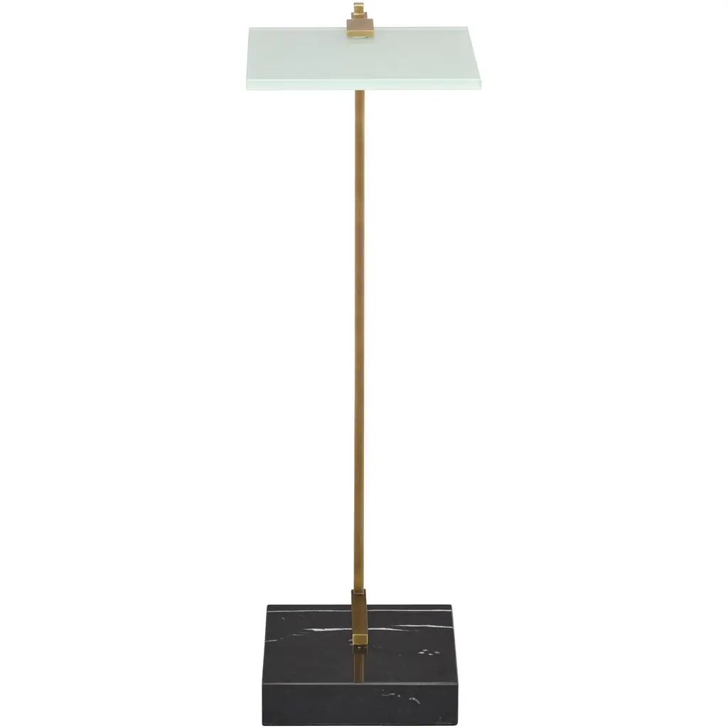 The Neil Drinks Table could be described as armed and dangerous, the antique brass arm set within a black marble base that extends its tempered glass top dangerously attractive! This is one of the Currey & Company offerings that is versatile not only due to its petite size but to its stylistic notes that hint at mid-century modern but can just as easily swing transitional and contemporary.