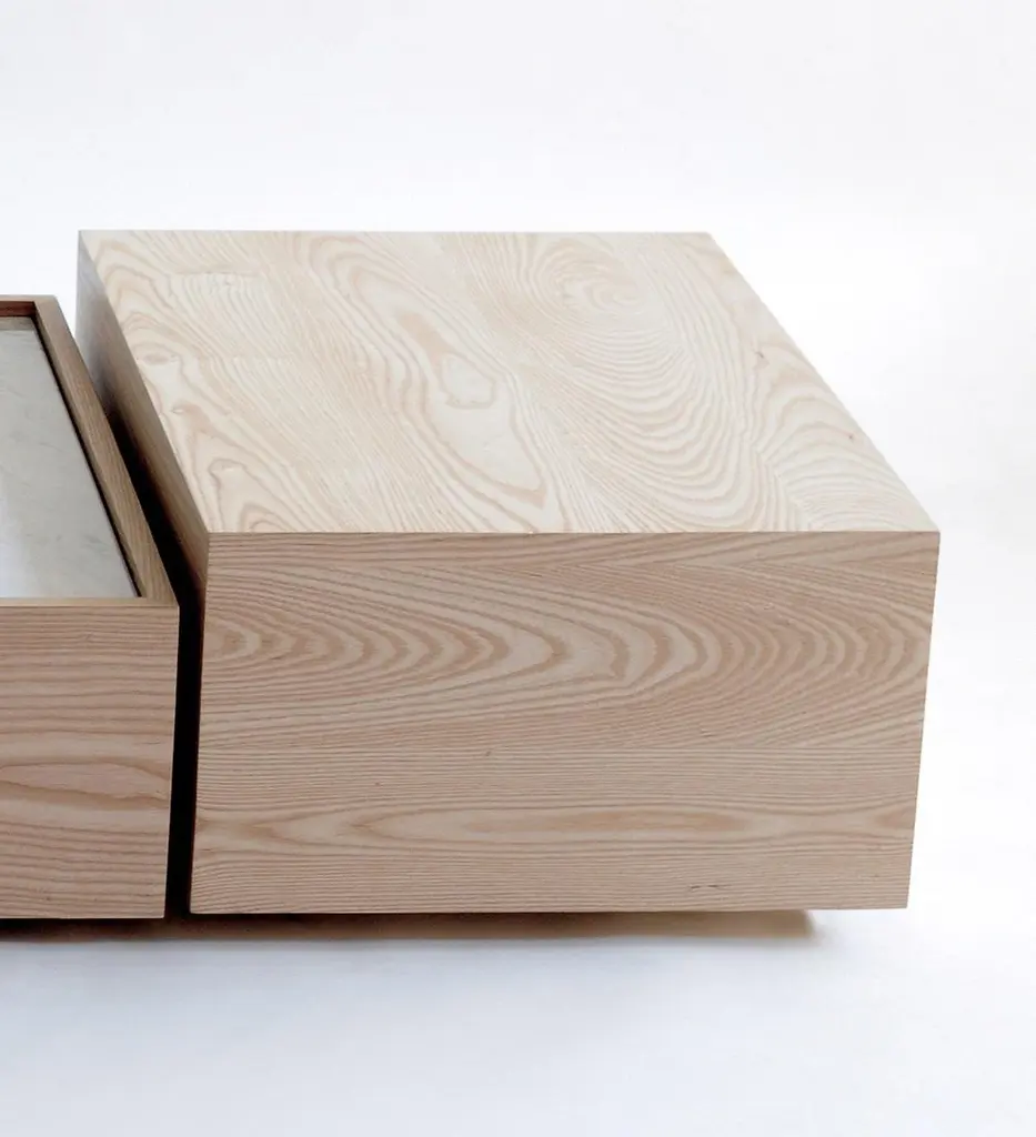 Nemesis Version B Coffee Table by Phase DesignDimensions: D 50.8 x W 76.2 x H 30.5 cm. Materials: White ash.Solid walnut, white ash, white oak, or ebonized oak, available in all wood construction with or without white Carrara marble top. Prices may vary. Please contact us.Coffee tables crafted out of solid lumber with inset marble tops. The wooden shell frames and separates the marble top, thus accentuating the inherent beauty of the natural stone. Available with an all wood companion piece.Autodidact award-winning designer Reza Feiz has always been drawn to the strength in simplicity. Lured to Southern California by its inventive, creative spirit, he quickly discovered his true calling among the vast community of creators and artisans whose skills and ingenuity expertly transform imagination into reality.Inspired by Los Angeles’ iconic landscape and the compelling beauty of the places and spaces he encountered, he envisioned furniture, lighting and tabletop accessories, fabricating them from contemporary materials with the help of a tightly knit coterie of craftspeople.The resulting restrained yet revolutionary pieces have garnered enthusiasm from an international audience.He’s been lauded as “An American designer who influences world design”, a “Style Pioneer” and “One of a group of select young designers who represent the leading edge of discovery in design.” Architectural Digest’s Mayer Rus noted that his “wide-ranging collections make a strong case for the enduring appeal of restrained modern design.” Surface Magazine raved that he “imbues his work with a 21st-century edge. His astute sense of restraint keeps the designs relevant in a constantly evolving industry, without needing to subscribe to trends.”“Reza Feiz imbues his work with a 21st-century edge. His astute sense of restraint keeps the designs relevant in a constantly evolving industry, without needing to subscribe to trends.”