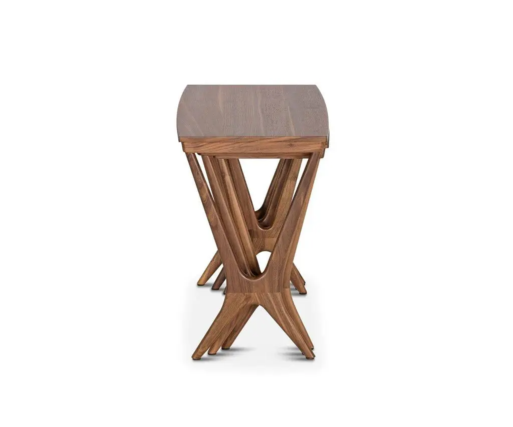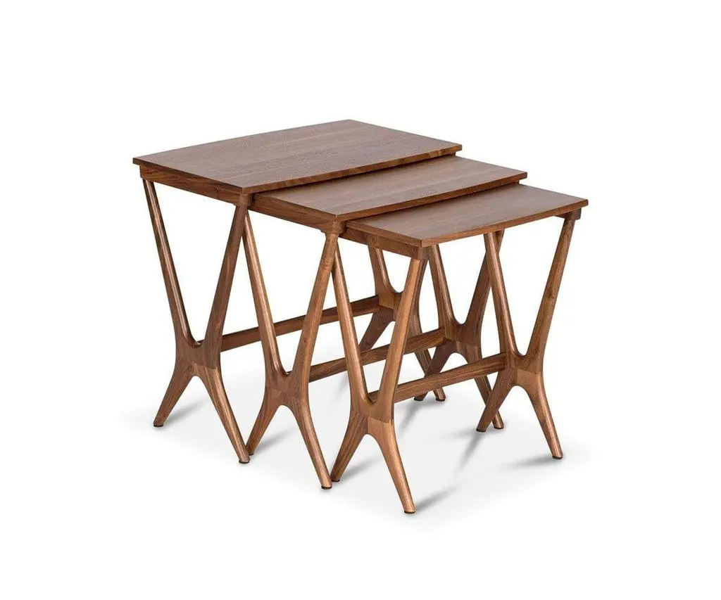 Practical and pretty, the Neria Nest of Tables are constructed of American walnut and feature an elegant X leg design. With three sizes that easily store away, you will find many uses for this set.