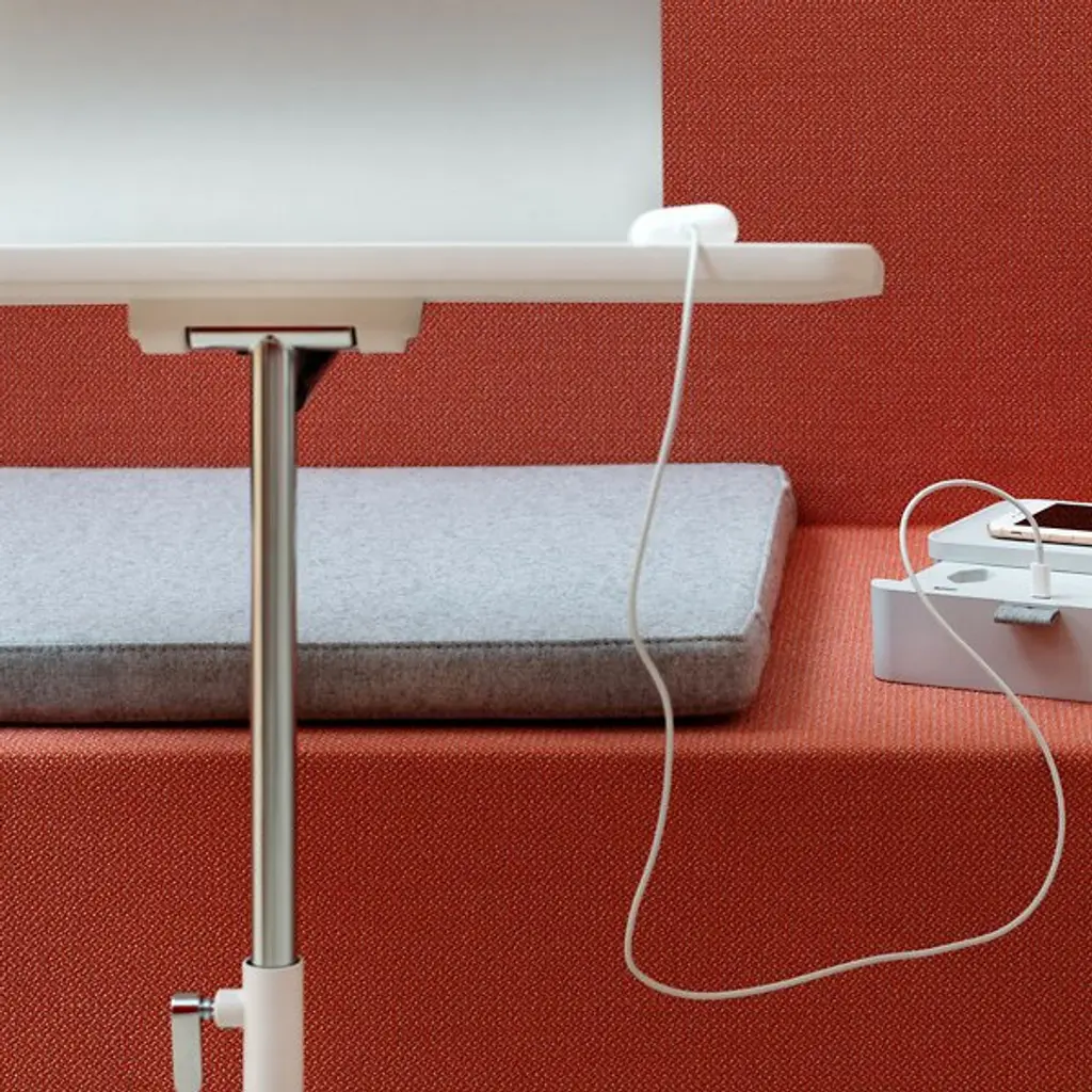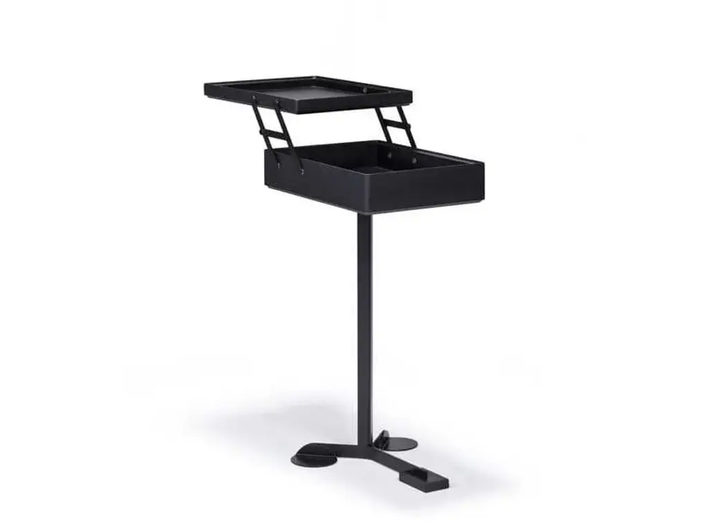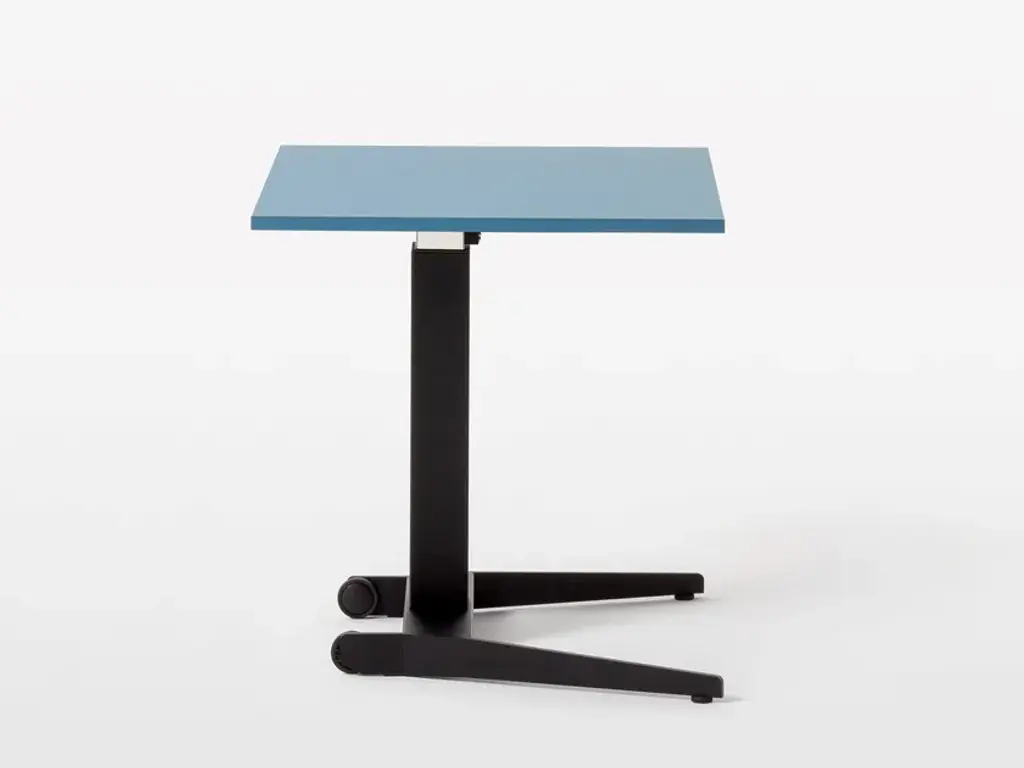 Have a usable surface to work on anywhere you go with the Vitra NesTable by Jasper Morrison. The polyurethane surface is height adjustable along its steel tube and aluminum base and tiltable, making for an ergonomically correct working posture whether sitting on a low sofa or barstool. Available in a variety of colors.