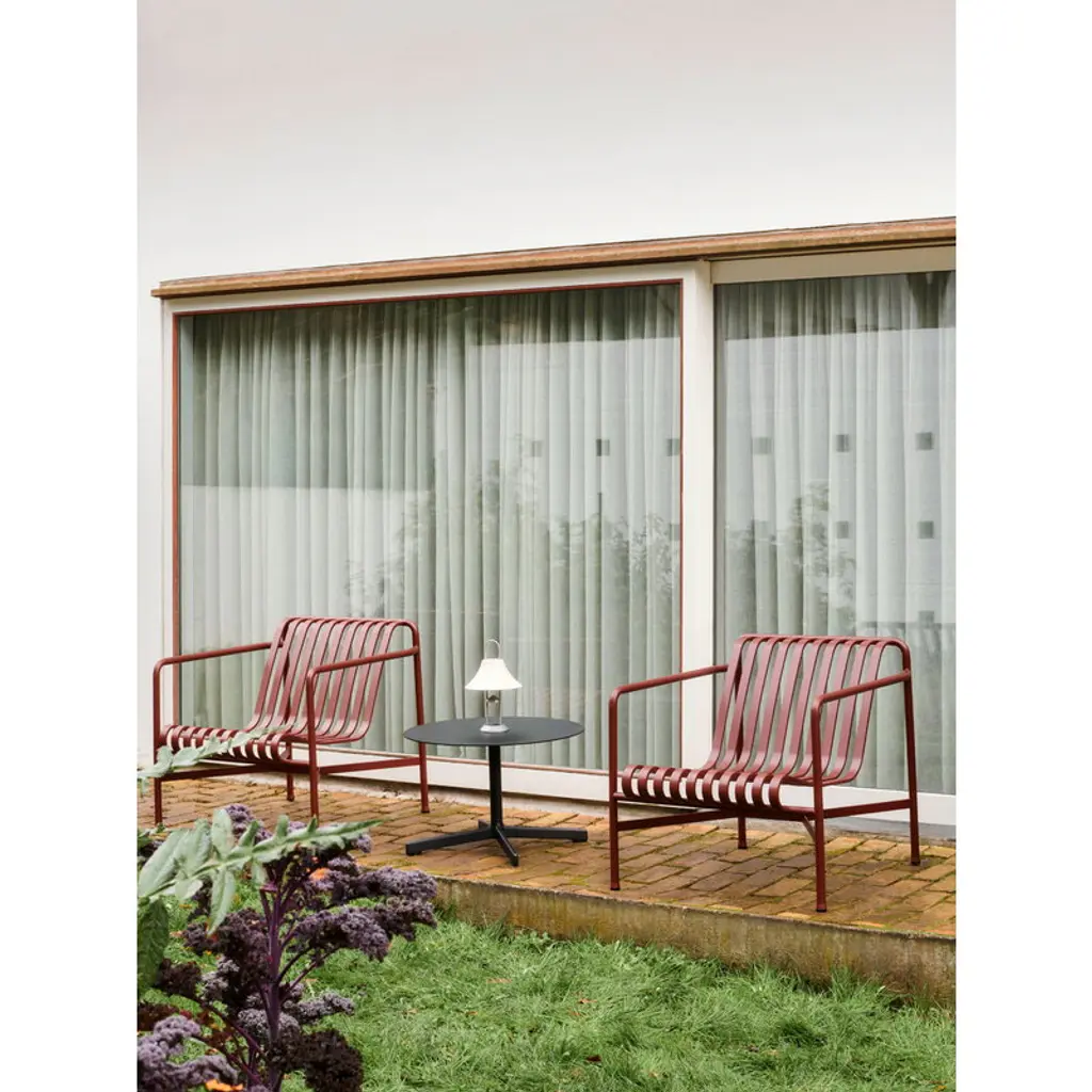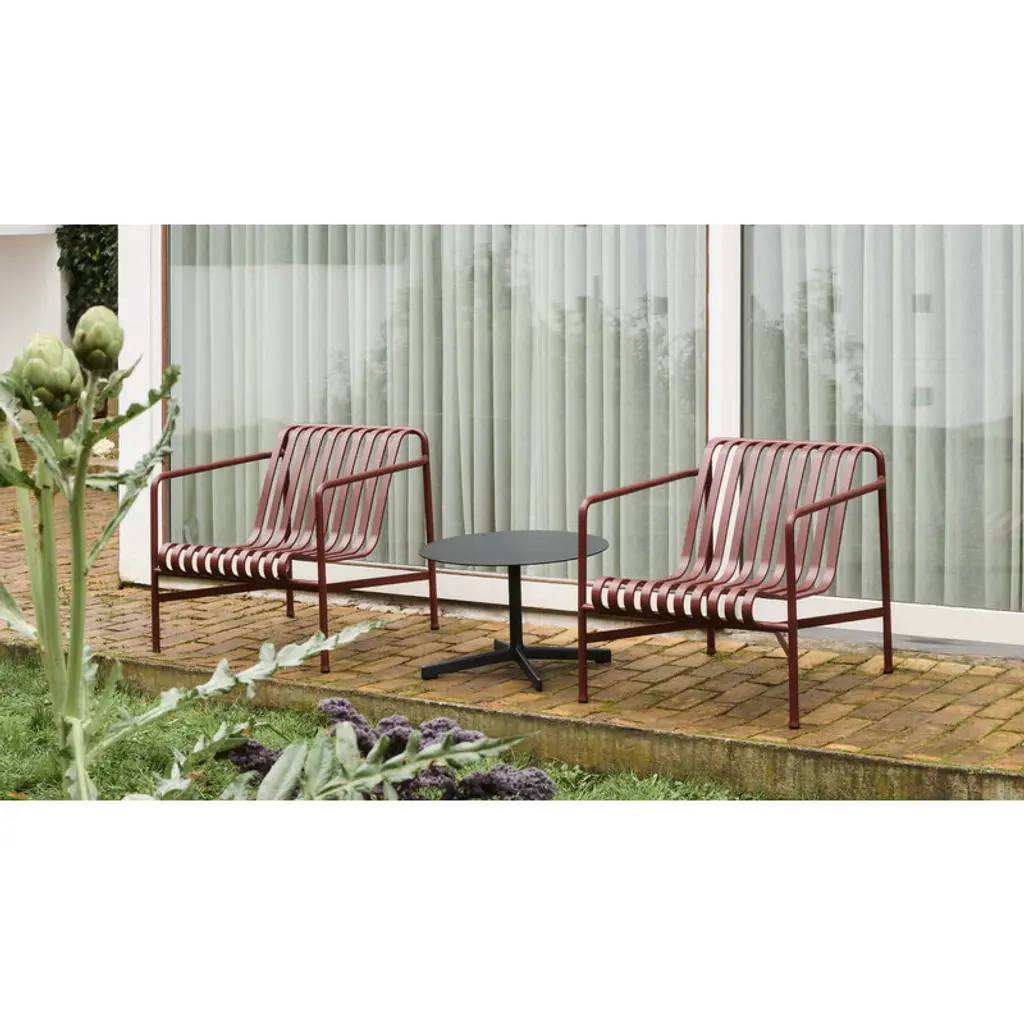 HAY's Neu Low is a streamlined metal table designed for both indoor and outdoor use. Neu table's simple, geometrical design consists of a combination of a round or square tabletop and a sturdy, tubular central pole. The clean and functional table is a great choice for public and domestic spaces, gardens and terraces.
