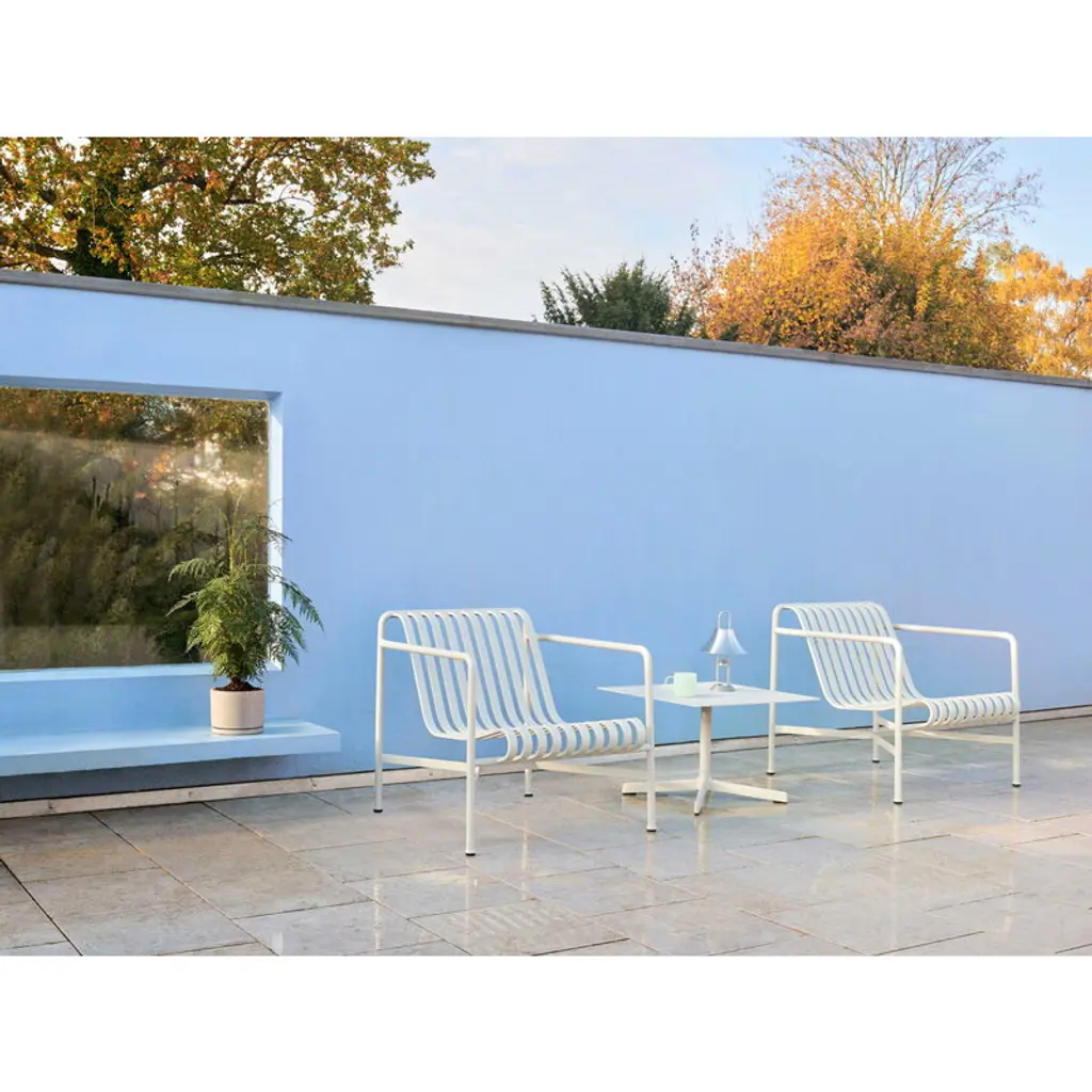 HAY's Neu Low is a streamlined metal table designed for both indoor and outdoor use. Neu table's simple, geometrical design consists of a combination of a round or square tabletop and a sturdy, tubular central pole. The clean and functional table is a great choice for public and domestic spaces, gardens and terraces.