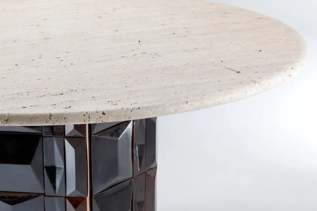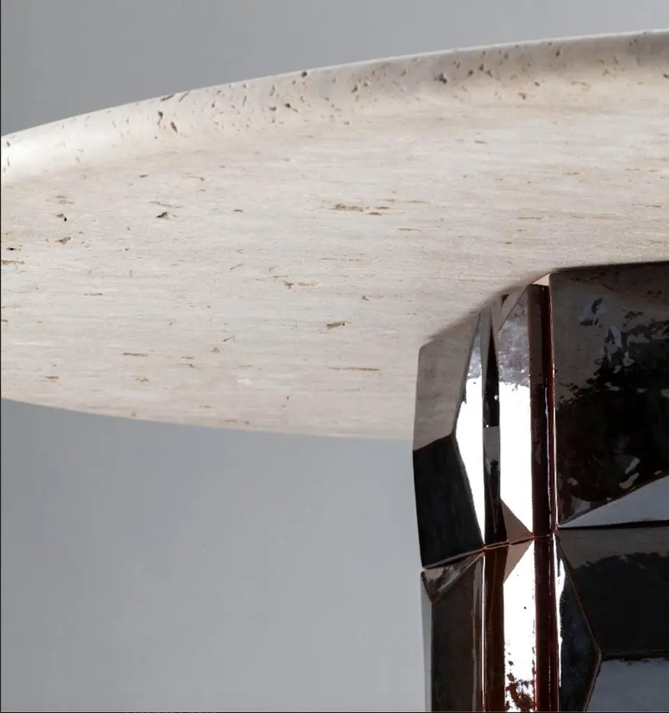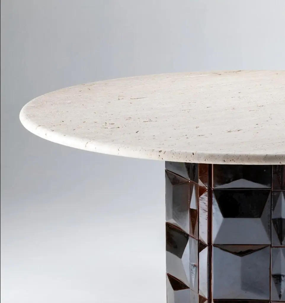 Born from a collaboration with Theia Tiles, the Milano Table celebrates the beauty of handcrafted design. This fully handmade piece features a hexagonal base clad in terracotta tiles arranged in a harmonious blend of three unique models. The lacquered wood and terracotta combination create an interplay of texture and precision. Anchored by a round tabletop, the true focal point lies in the sculptural table feet, making the Milano Table a bold and elegant centrepiece for any space.