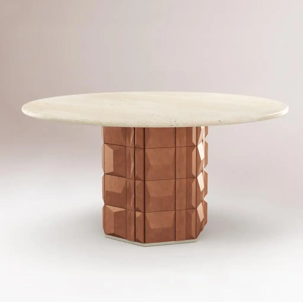Born from a collaboration with Theia Tiles, the Milano Table celebrates the beauty of handcrafted design. This fully handmade piece features a hexagonal base clad in terracotta tiles arranged in a harmonious blend of three unique models. The lacquered wood and terracotta combination create an interplay of texture and precision. Anchored by a round tabletop, the true focal point lies in the sculptural table feet, making the Milano Table a bold and elegant centrepiece for any space.