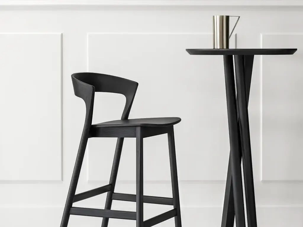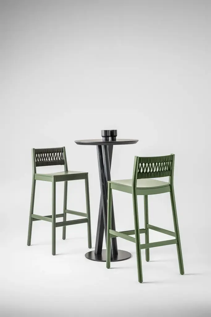 NIELS | Table and high table with painted metal base and round or square HPL tabletop, designed by Massimo Broglio.