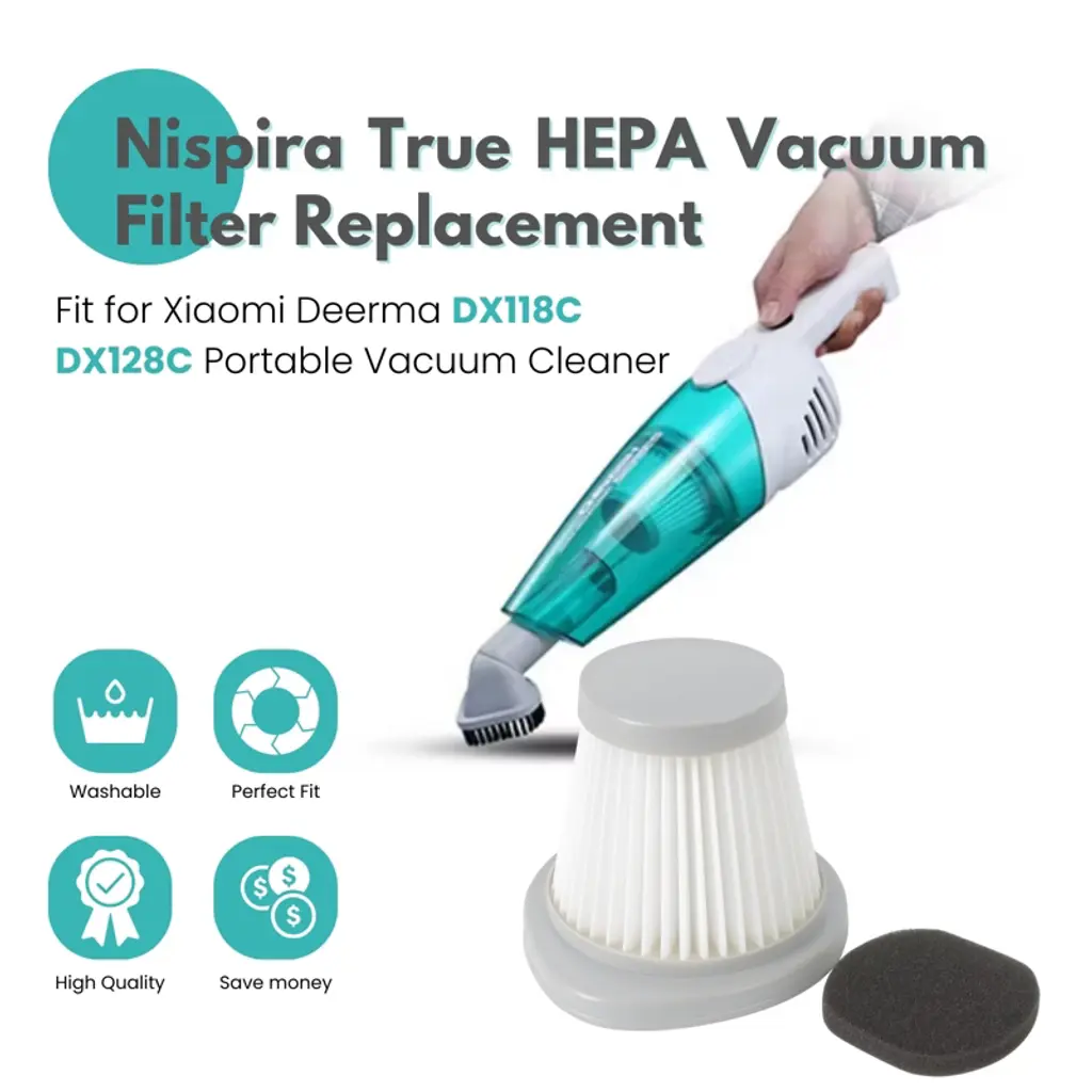 Nispira Premium HEPA Vacuum Filter for Xiaomi Nispira premium HEPA vacuum filter is made from high-quality materials to ensure durability and long-lasting performance. For enhanced efficiency, the filter is washable and reusable — simply rinse it under clean water and allow it to dry completely before reinstalling. Please ensure the filter is fully dry before installation. This filter is compatible with Xiaomi DX118C DX128C Handheld Portable Vacuum Cleaner models. It is not suitable for other Xiaomi or non-Xiaomi vacuum models. Our premium filters are crafted with top-quality materials to help keep your home as clean as possible. Product Details: Dimensions: 1.8” x 3” x 3.5” Quantity: 6 filters included Maintenance: For optimal performance, clean the filter every 2–4 weeks and replace every 2–3 months. We stand behind our product with a 100% customer satisfaction guarantee — quality meets or exceeds leading national brands.