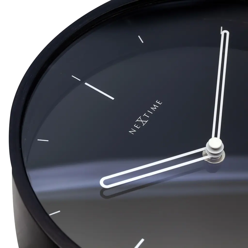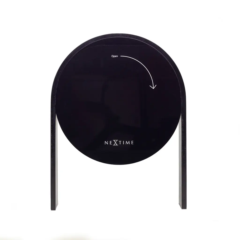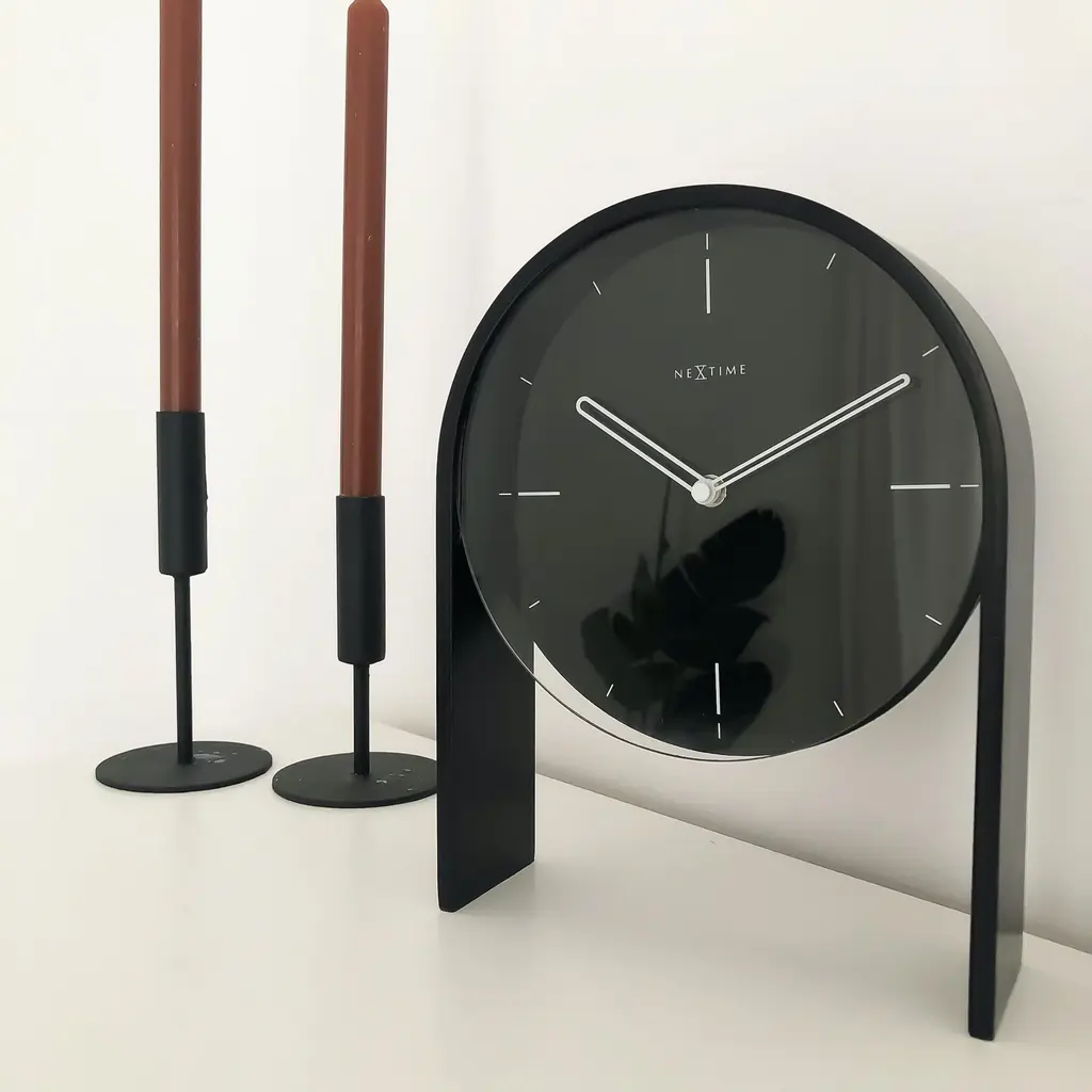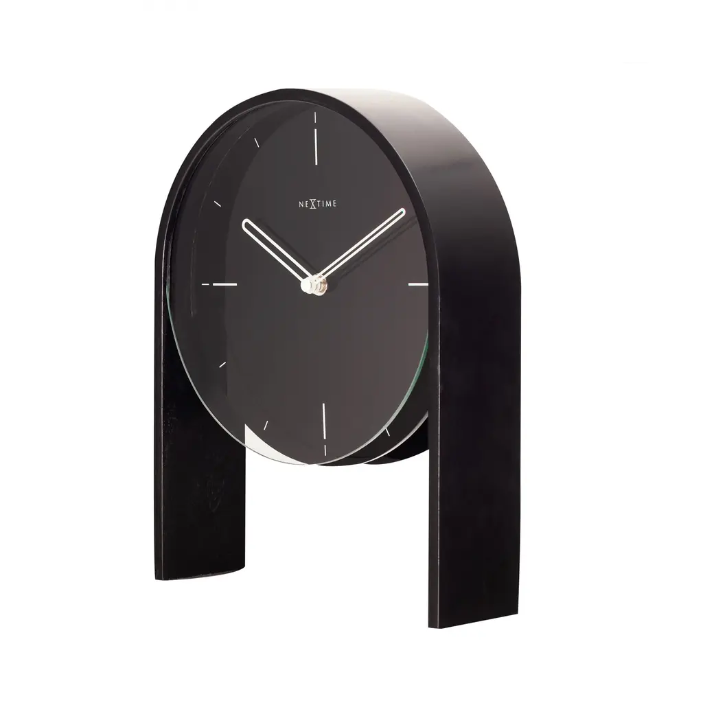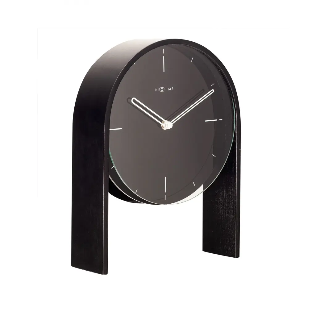 The NeXtime Noa Table Clock offers a refined take on the passage of time. Inspired by architectural elements, this timepiece features an arched frame that “hugs” the dial. Made from solid wood, the frame has a black finish. A matching black dial boasts white line indexes, slightly more pronounced at 12, 3, 6, and 9 o’clock, and subtle for the other 8 hours. The two slim hands have an elegant open design and a white finish. In front of the dial, a durable glass cover protects the clock and make it look even more stylish. Similarly to other NeXtime timepieces, the Noa Table Clock operates silently without ticking.
