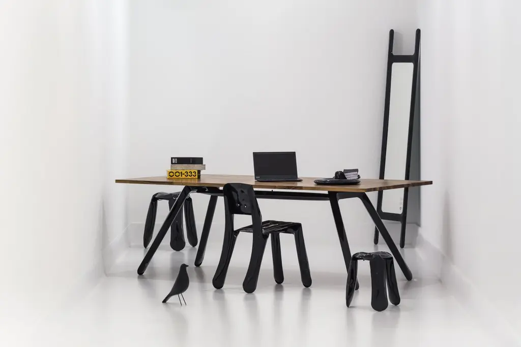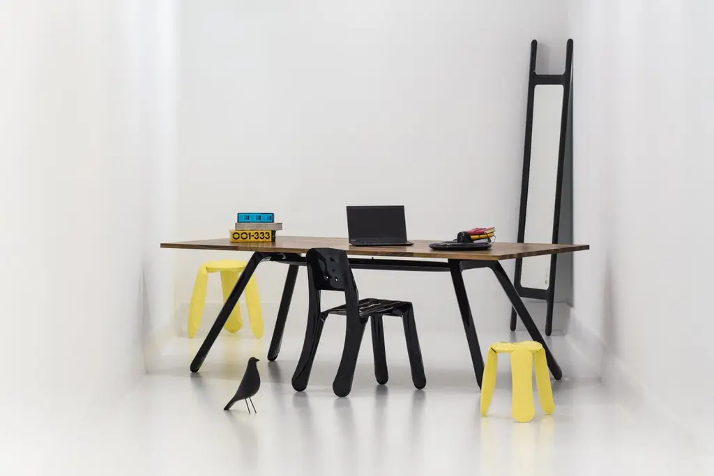 Nogi Table Polished Black Glossy Color Carbon Steel Writing Table By Zieta