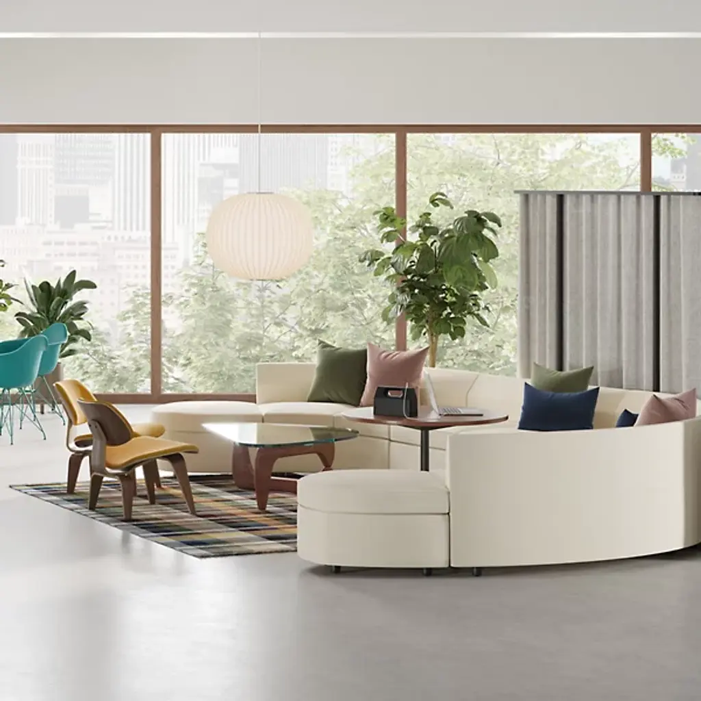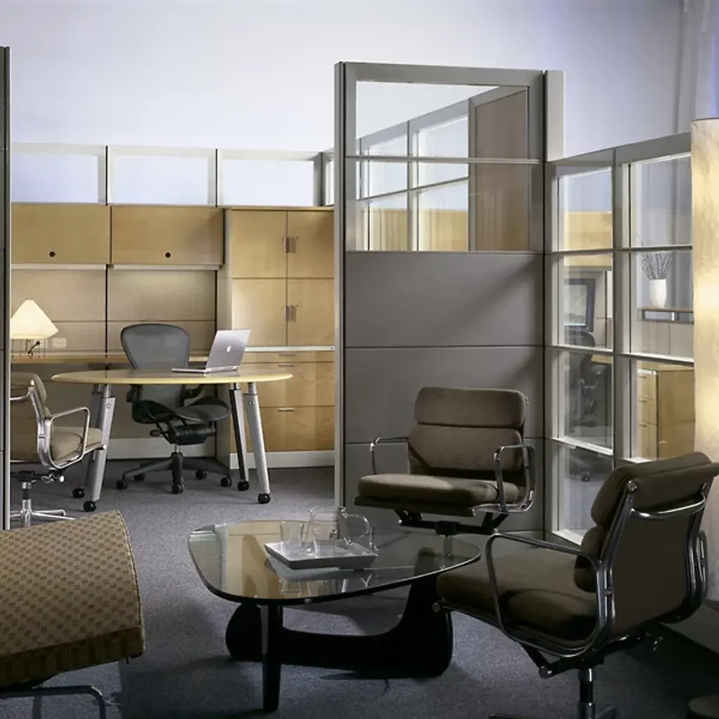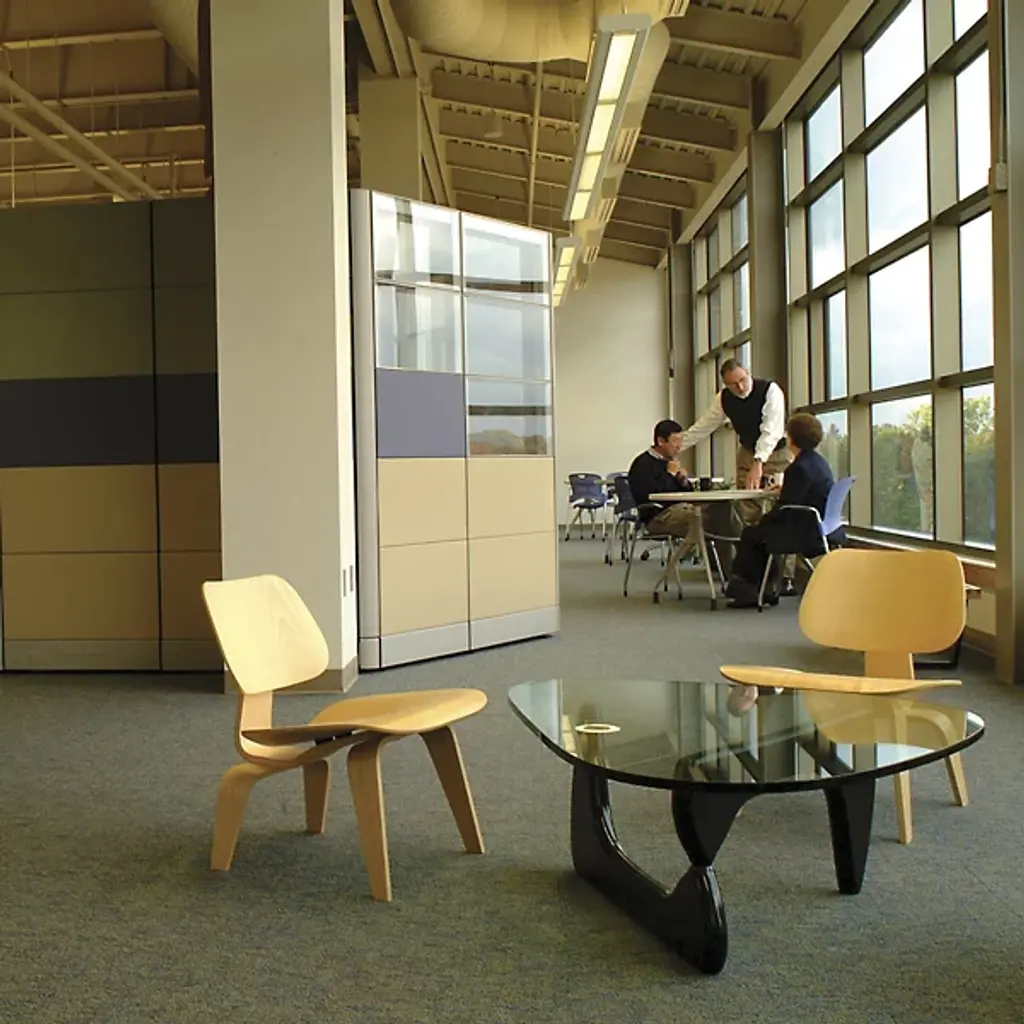 Original masterpiece of a table by Herman Miller. The Noguchi Table offered by Herman Miller is a style icon in its own right; continuing to prove the top tier offerings from Herman Miller are often without equal in the marketplace. This striking contrasted glass on wood construction offers a modified three-legged design that is immensely thought-provoking and bold.