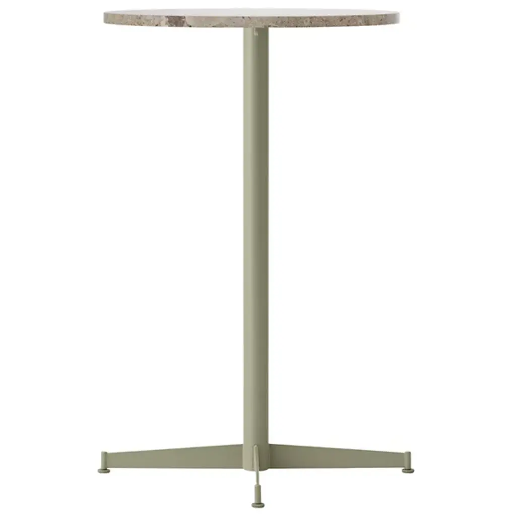The Nook Round Bar/Counter Table with Star Base from Audo Copenhagen demonstrates an impressive height, balanced by a four-pointed base that anchors it securely. Designed by Kroeyer-Saetter-Lassen, the table pairs refined proportions with lasting strength for a design that feels both light and steady. Made in Latvia, it can be used indoors or outdoors, depending on the selected top. The slender build showcases resilience and clarity of form, making it a great gathering place that fuses stability with straightforward elegance.