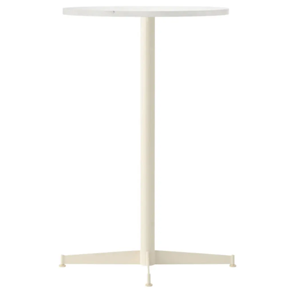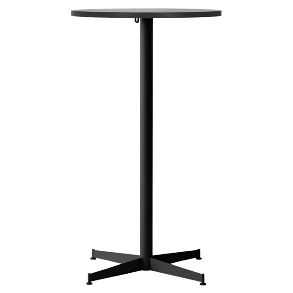 The Nook Round Bar/Counter Table with Star Base from Audo Copenhagen demonstrates an impressive height, balanced by a four-pointed base that anchors it securely. Designed by Kroeyer-Saetter-Lassen, the table pairs refined proportions with lasting strength for a design that feels both light and steady. Made in Latvia, it can be used indoors or outdoors, depending on the selected top. The slender build showcases resilience and clarity of form, making it a great gathering place that fuses stability with straightforward elegance.