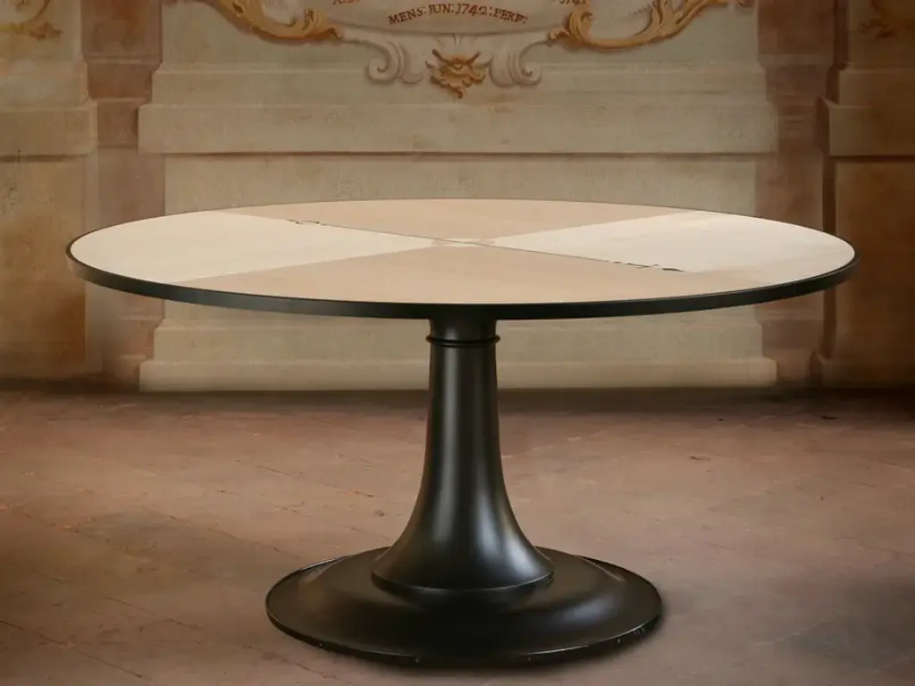 Nord Sud - Round table made of Maple wood with Ebony inlay. In the picture in the Natural Finish, F.Naturale. Table awarded with the "Best Design 2006" by the Gioia Casa magazine. Size: Diam. 150 H 78