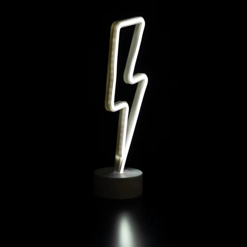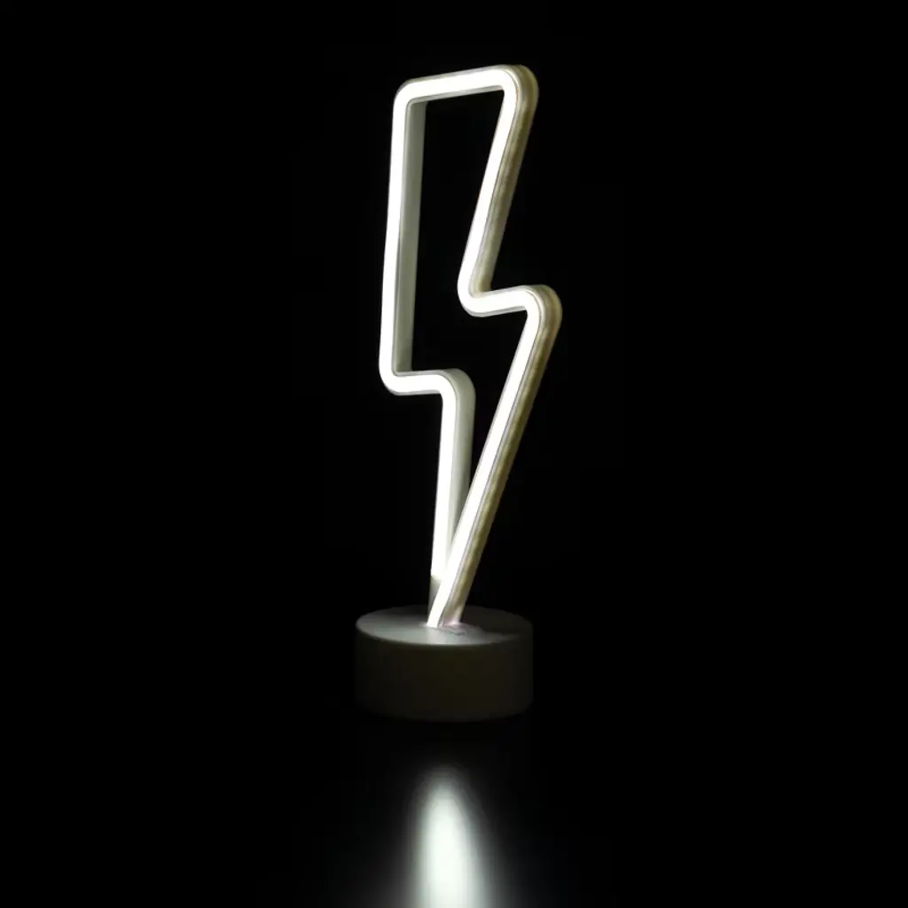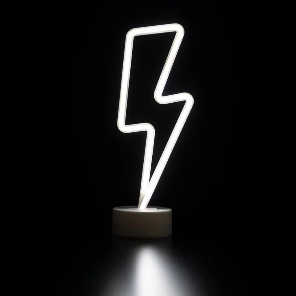 Strike some energy into your home with this neon lightning bolt! Our bold, battery-operated LED light adds a jolt of fun to any space – electrify a desk, jazz up a nightstand or bring a flash of brilliance to a kids’ room or game room. The sleek white LED neon light gives off retro-cool vibes with a modern twist – and since it's cordless, you can flash your flair anywhere! Lightweight and easy to display, this neon lightning bolt lamp is the perfect way to add some shockingly good vibes to your decor. Product Features: One-sided design Color: white rope lights Requires 3 AA batteries - not included LED lights use up to 80% less energy Stays cool to the touch Comes with detachable base for easy storage Convenient on/off switch at the bottom UL certified and approved for indoor use Dimensions: 11.5"H x 4.75"W x 3.5"D Material(s): plastic/silicone Note: batteries not included